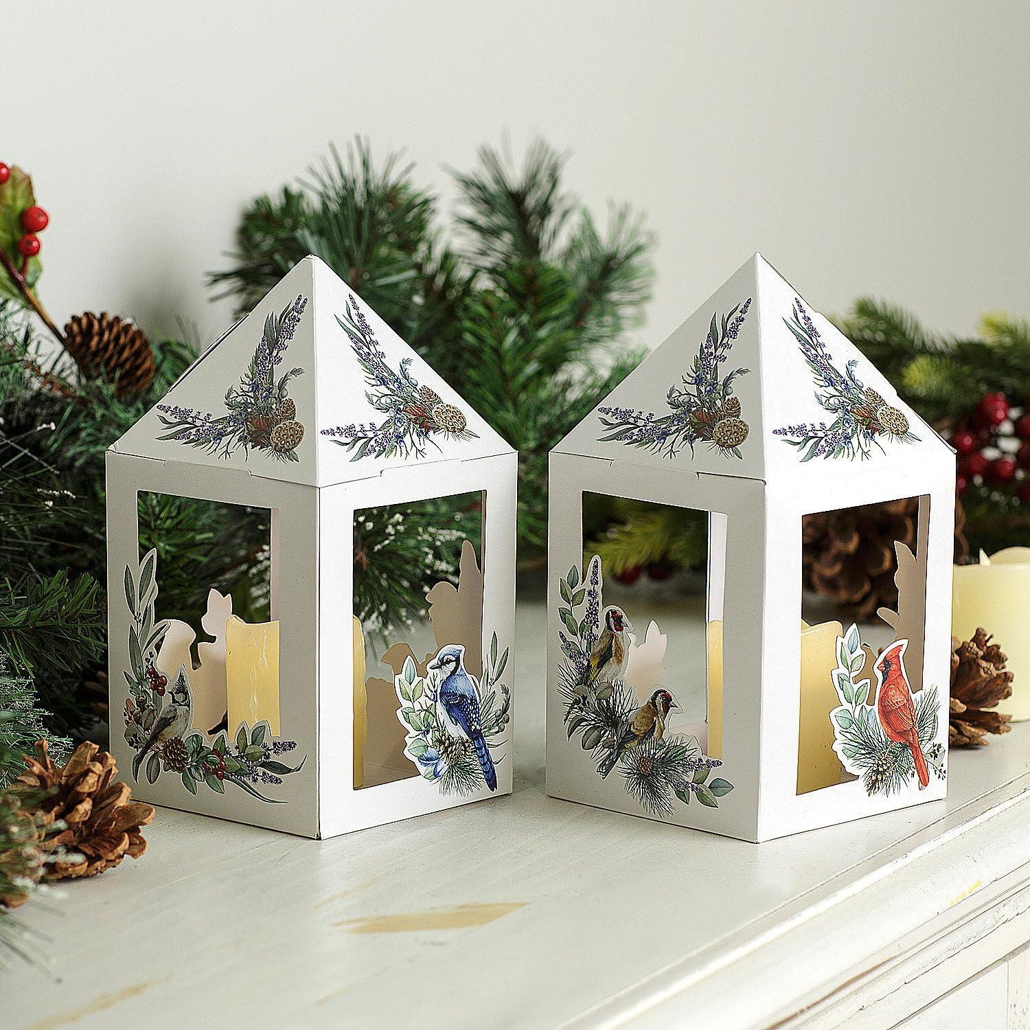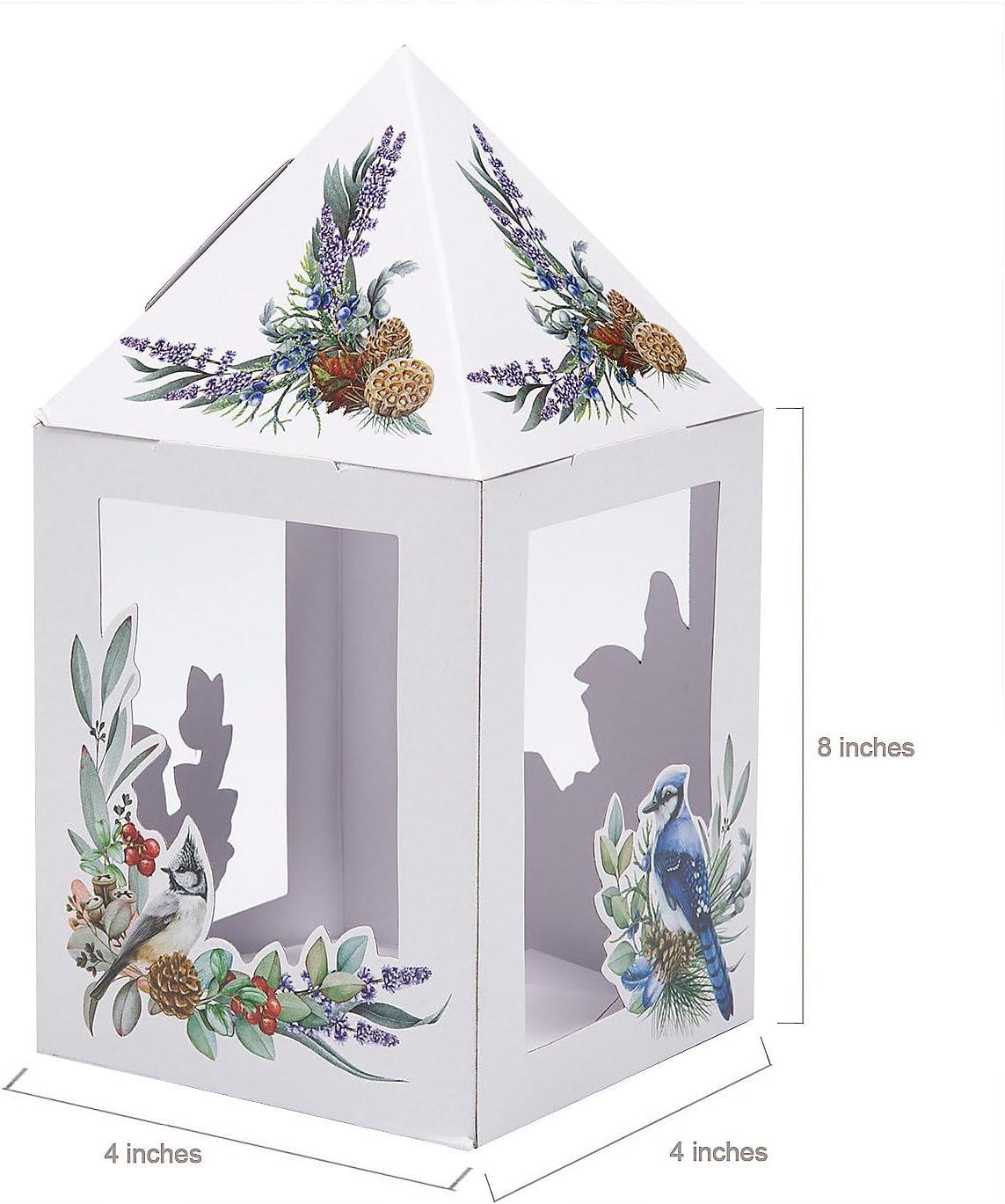 Pinecone & Birds Paper Lantern Centerpieces – 4″ x 4″ x 8″ (1 Set) – Charming Woodland-Themed Decor for Weddings, Parties & Holiday Table Decorations