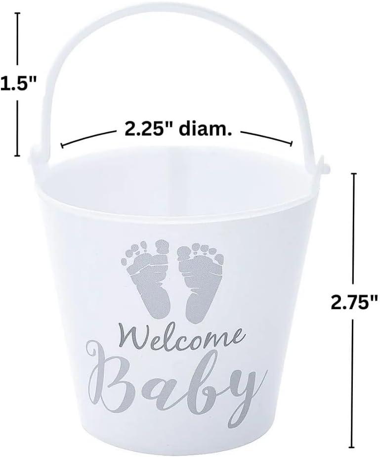 • Fun Express 12 Pieces Mini Baby Shower Favor Pails, BPA Free, Baby Shower Party Supplies, White