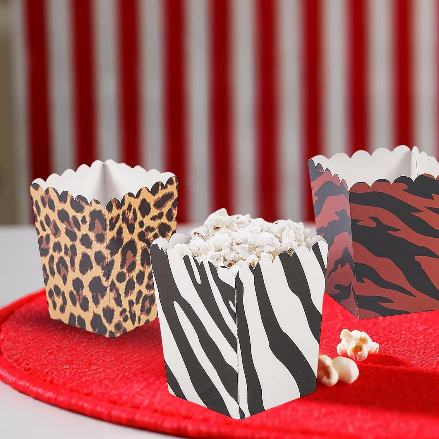 • Fun Express Animal Print Mini Popcorn Boxes – Vibrant Party Supplies VBS Vacation Bible School Birthday Baby Showers Special Events – Fun Decorative Snack Containers for Popcorn – Multicolor 24 Pieces