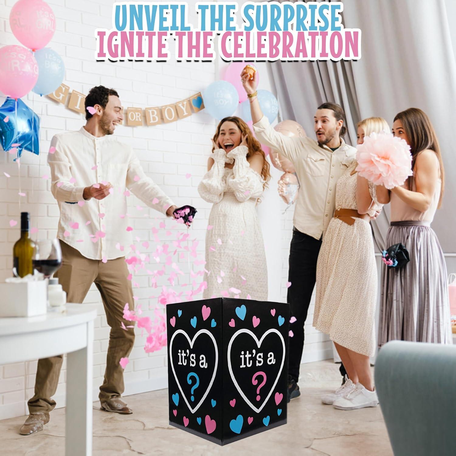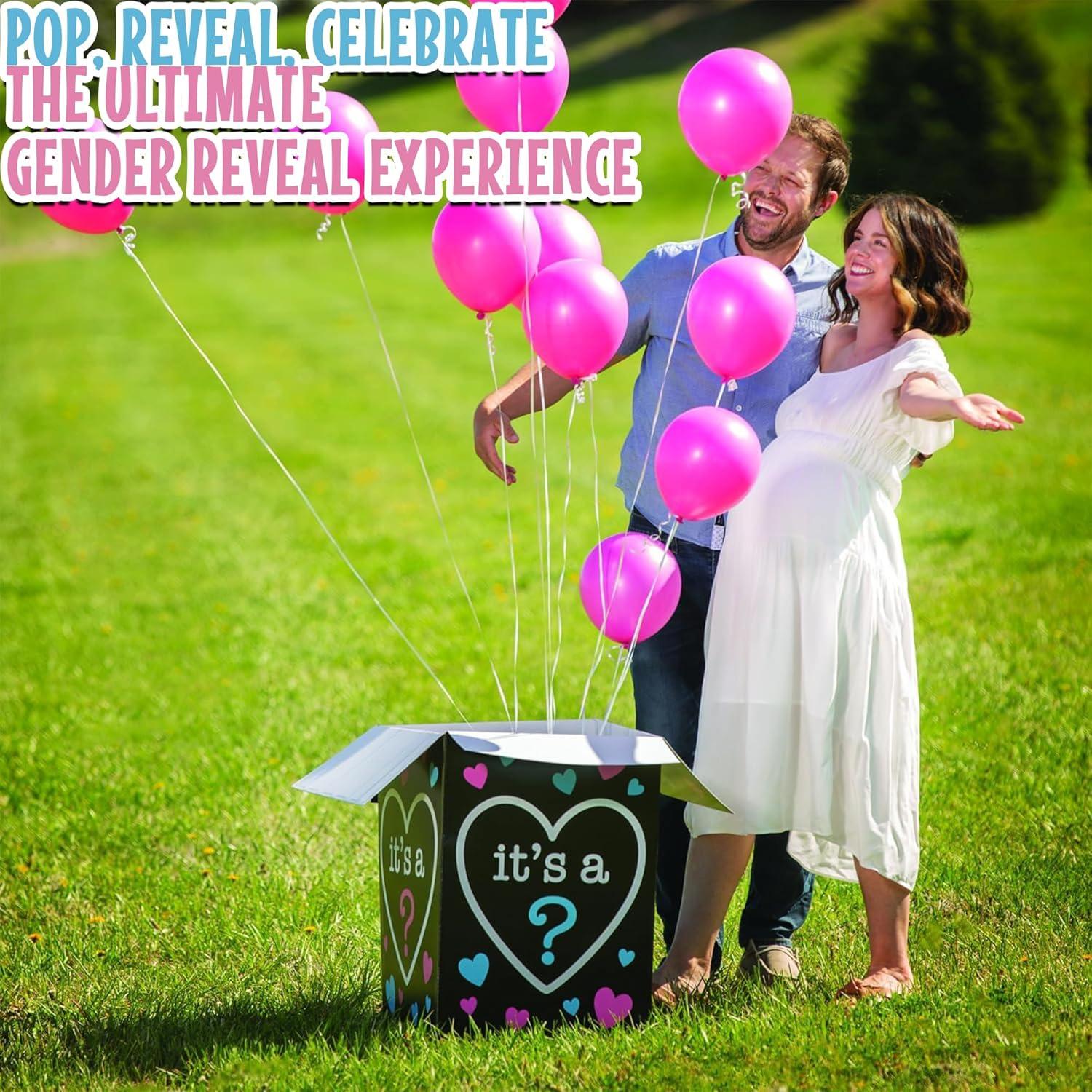 Fun Express Gender Reveal Balloon Box for Baby Shower Party – Premium 24 Inch Tall Black Cardboard Box with Pink & Blue Design | Perfect for Boy or Girl Announcement Celebrations & Games