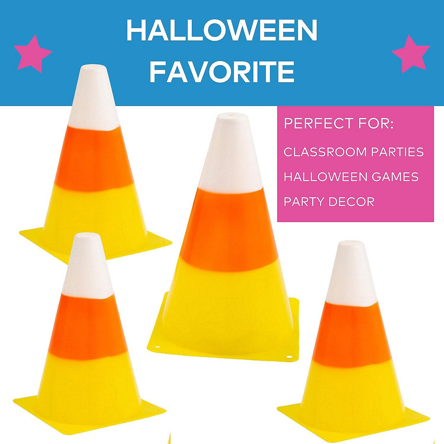 Fun Express Candy Corn Traffic Cones 12 Pack – Halloween Table Decor & Mantel Decorations | Fake Candy Corn for Fall Halloween Party Games, Shelf Display & Home Festive Arrangements | 8″ Plastic