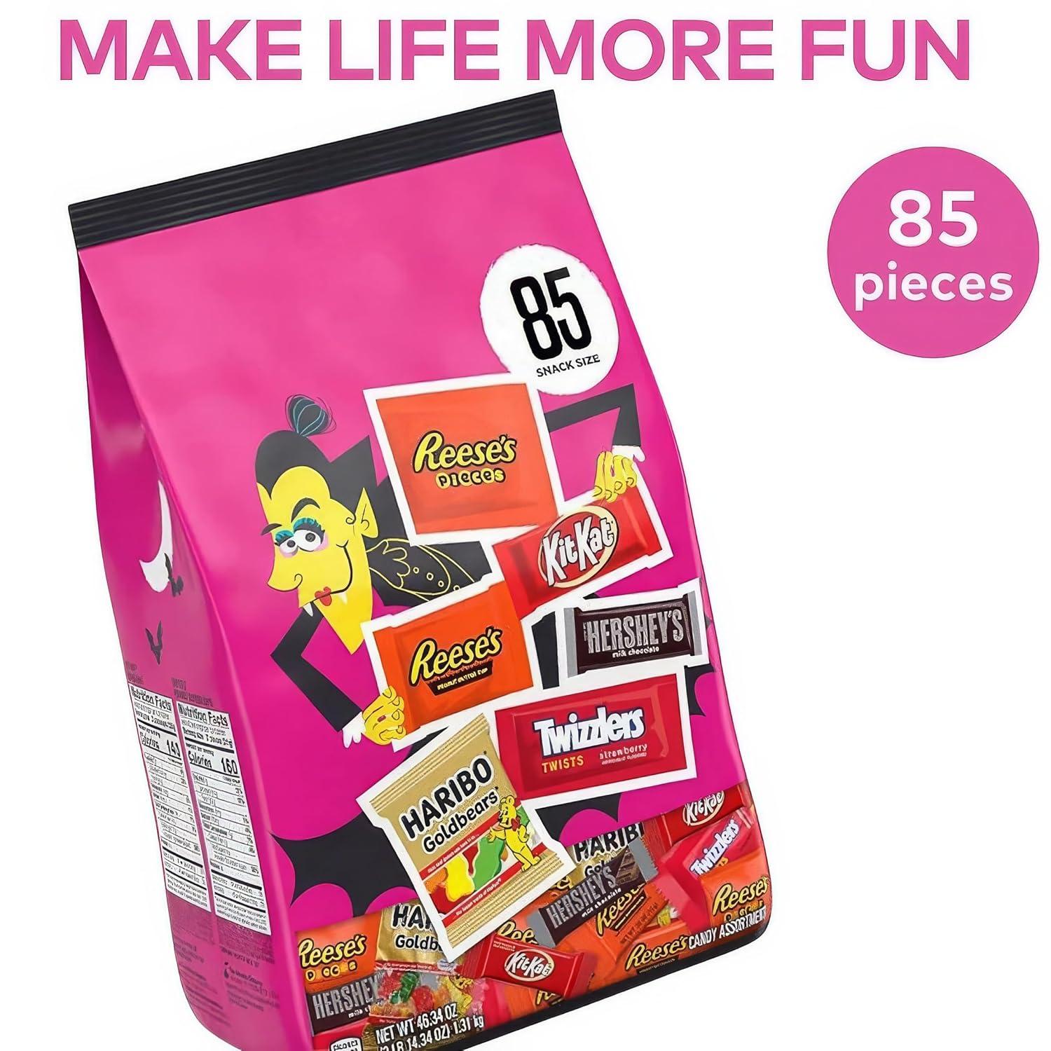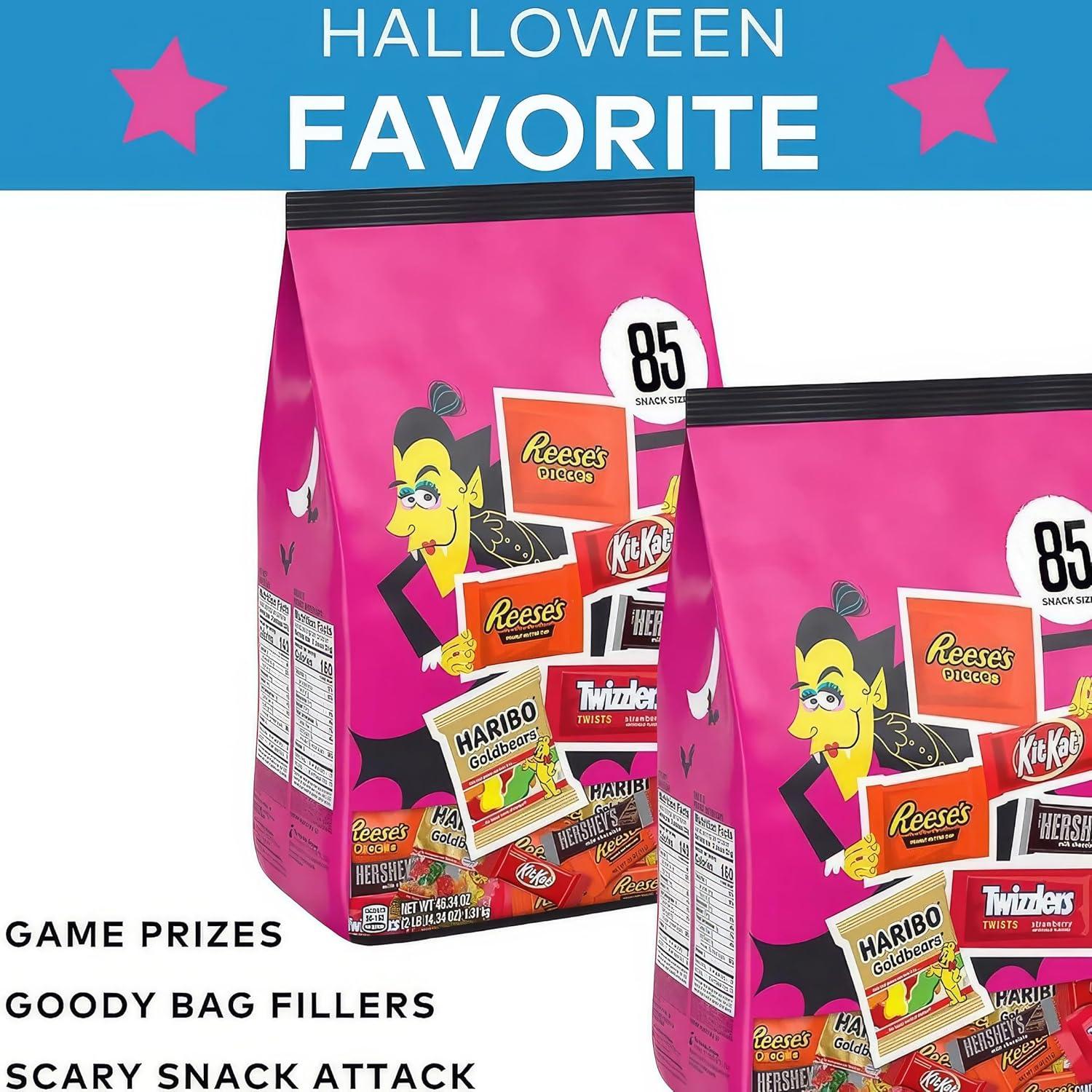 Hershey’s Halloween Candy Snack Size Assortment – (Pack of 85) – Includes Reese’s, Kit Kats, Hershey’s, Twizzlers, and Haribo – Perfect for Trick-or-Treating and Halloween Parties