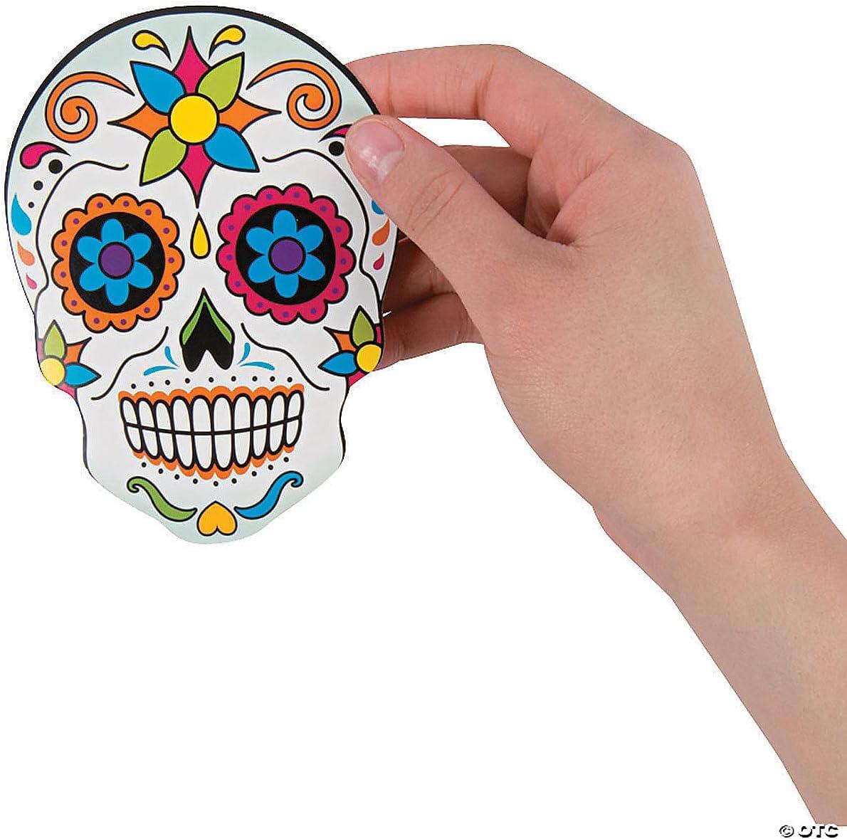 Day of The Dead Mini Sugar Skull Cutouts – Set of 12 – Halloween Party Decor and Classroom Wall Decorations