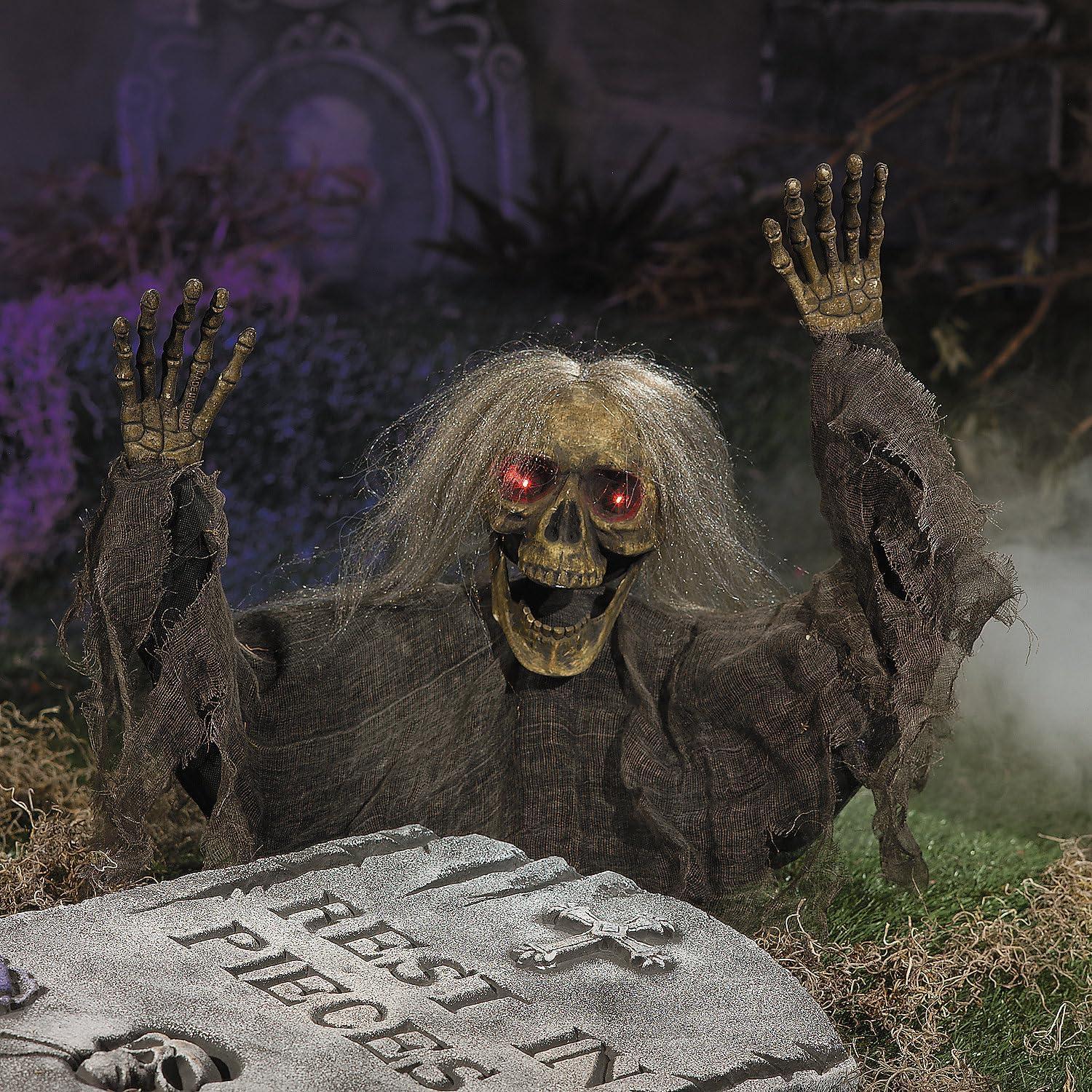 Fun Express 12″ x 38″ Try Me Light-Up Skeleton Grave Breaker Halloween Decoration, Spooky Outdoor Decor, Creepy Skeleton Prop for Haunted Houses