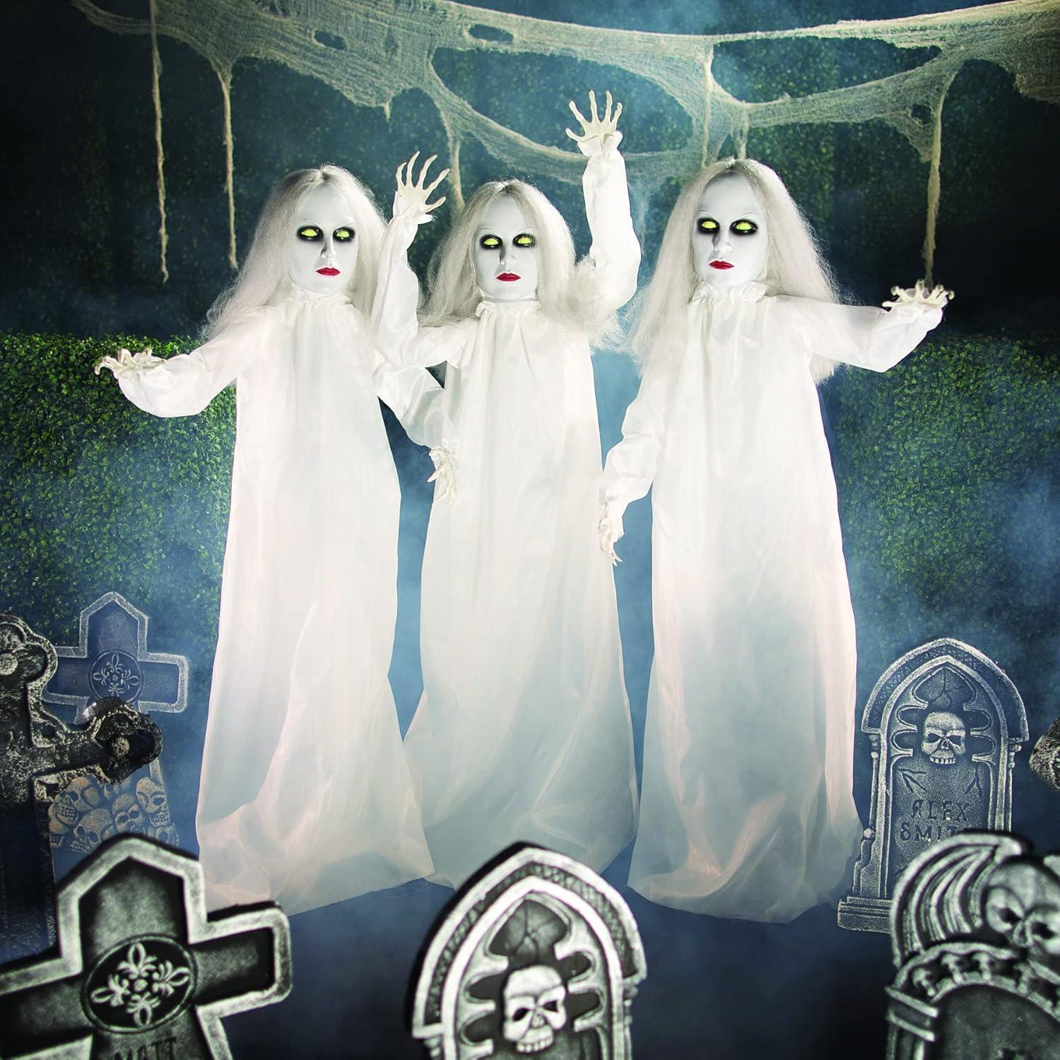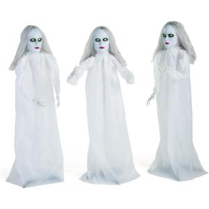 Fun Express 3 Pieces 4 ft. Halloween Ghostly Girl Yard Stakes, Spooky Yard Decor, Halloween Yard Decorations