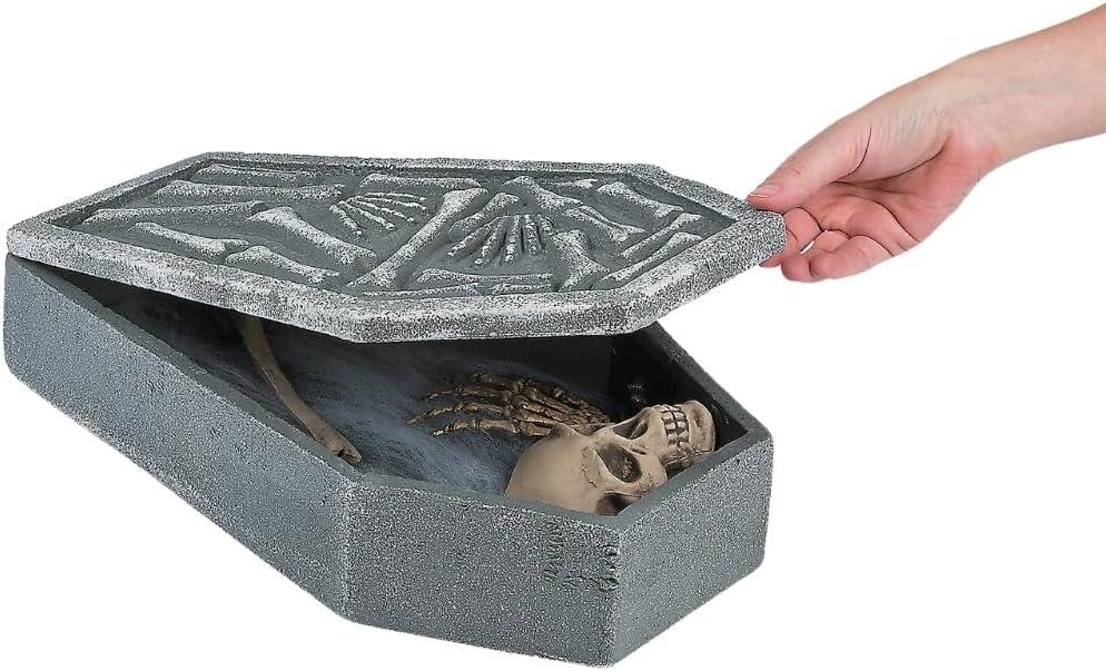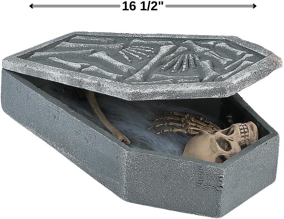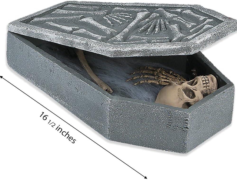 LED Light Up Skull in Coffin for Halloween Home Decor, Batteries Included