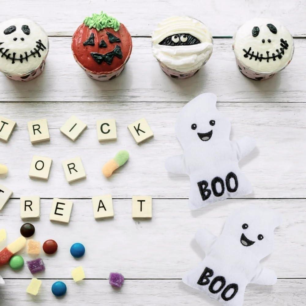 Adorable White Halloween Stuffed Ghosts with Boo Print – 3.75″ x 4.25″ (Pack of 12) – Perfect for Trunk-or-Treat Event Giveaways, Halloween Party Favors, or Game Prizes