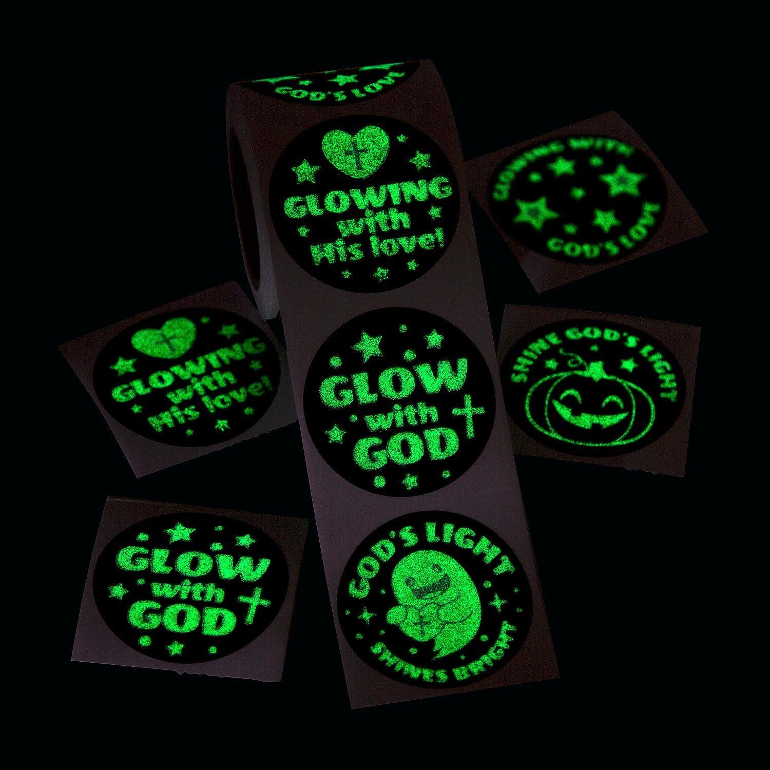 Fun Express 1 1/2″ Glow-in-The-Dark Glow with God Sticker Roll – 100 Piece