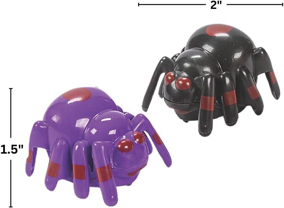 Fun Express Mini Halloween Spider Pull-Back Toys – Black & Purple Plastic – 2″ x 1 1/2″ – Halloween – 12 Pieces – Great for Trick-or-Treating & Parties