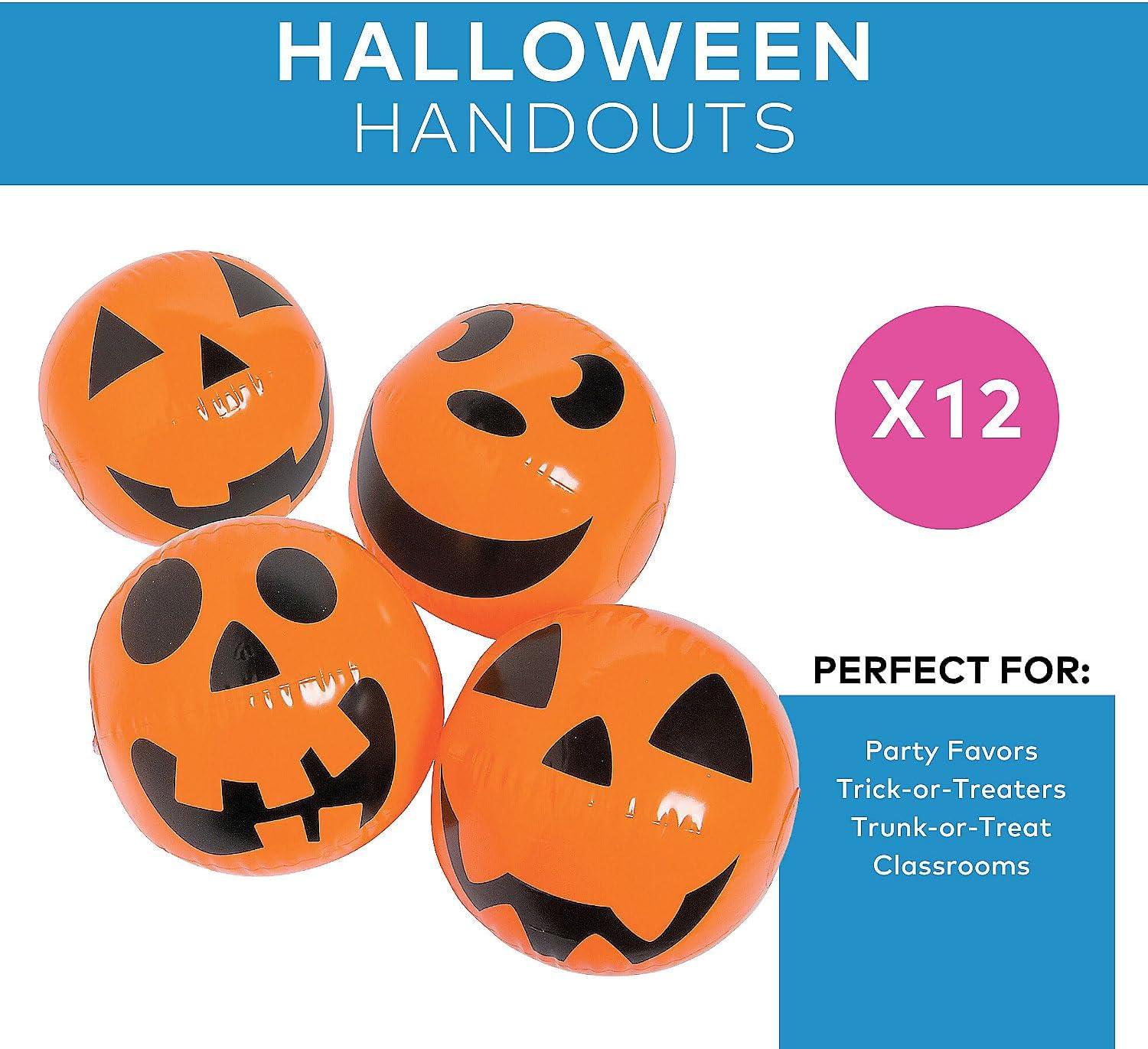 • Halloween Jack O Lantern Pumkin Beach Balls (Set of 12) Halloween Toys and Trunk or Treat Party Supplies