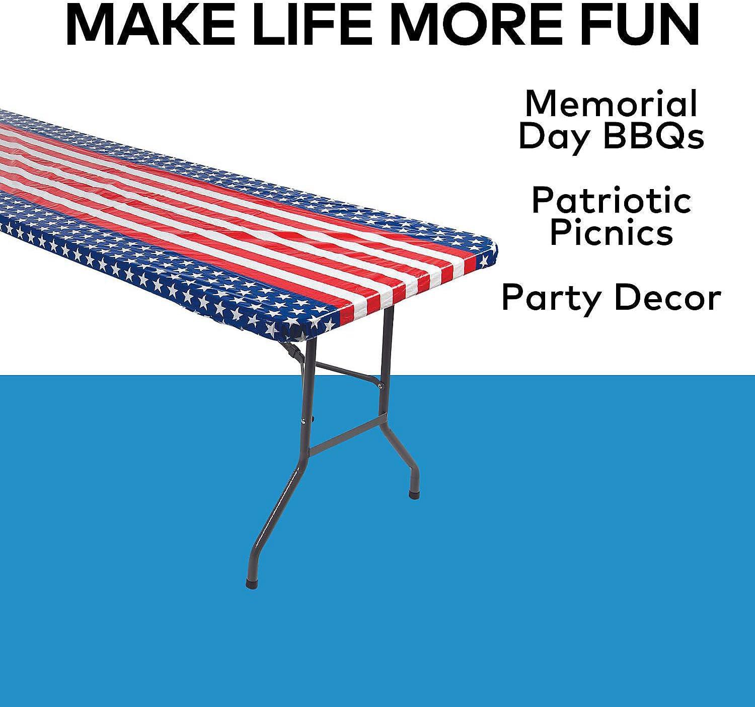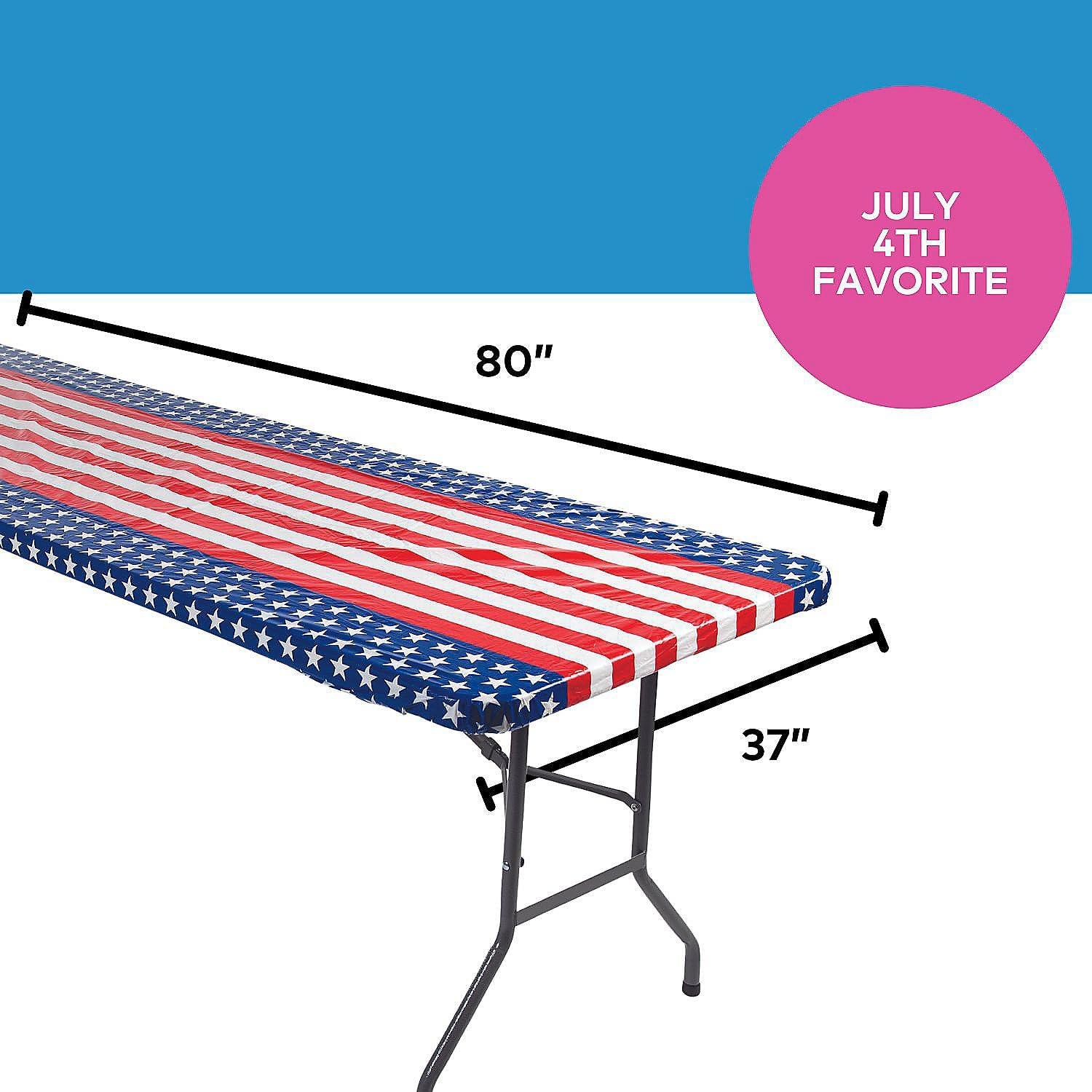Fun Express Patriotic Fitted Rectangle (37″ X 80″) Disposable Plastic Tablecloth, Table Cover – Patio, 4th of July, Patriotic Party Supplies