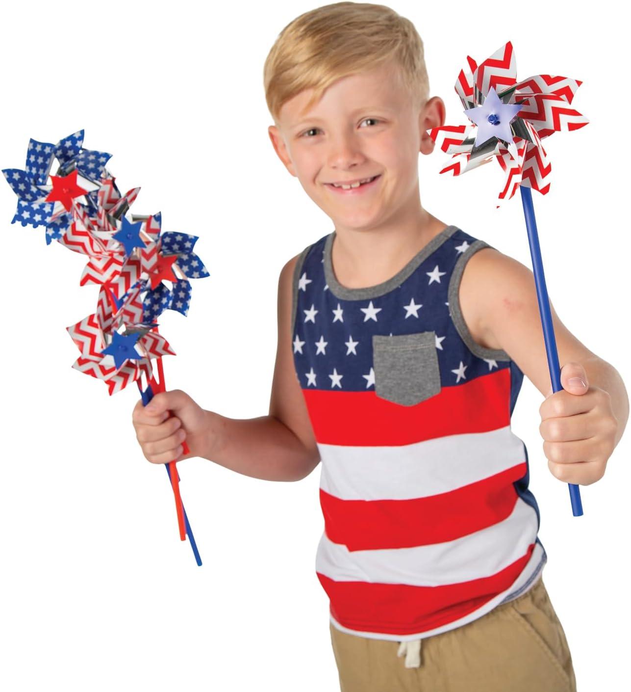 Fun Express Patriotic Pinwheels – 36 Pieces – 11″ Tall – Great for Memorial Day, 4th of July, Veteran’s Day and Other Celebration Events