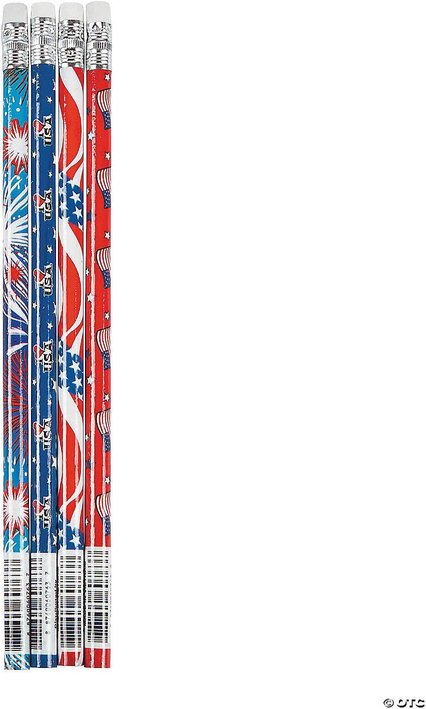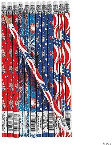 Fun Express USA Patriotic Pencils – Bulk set of 144 – Fourth of July party favors and giveaways