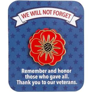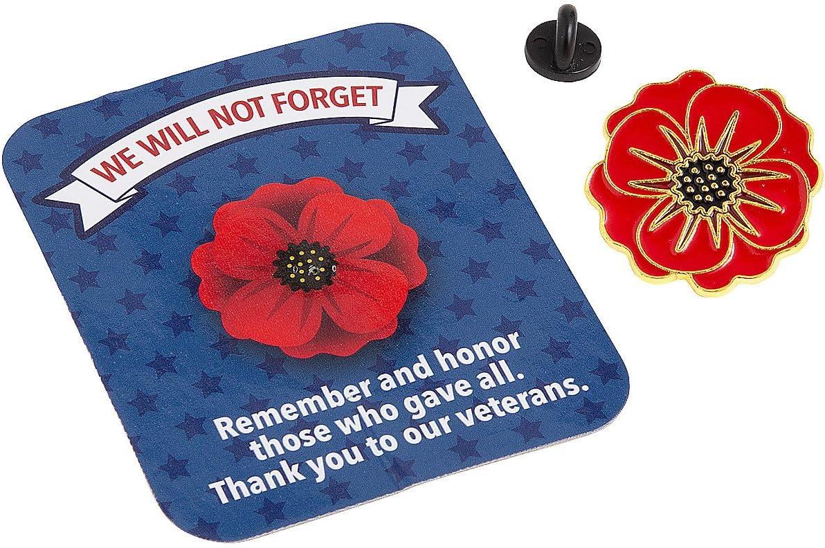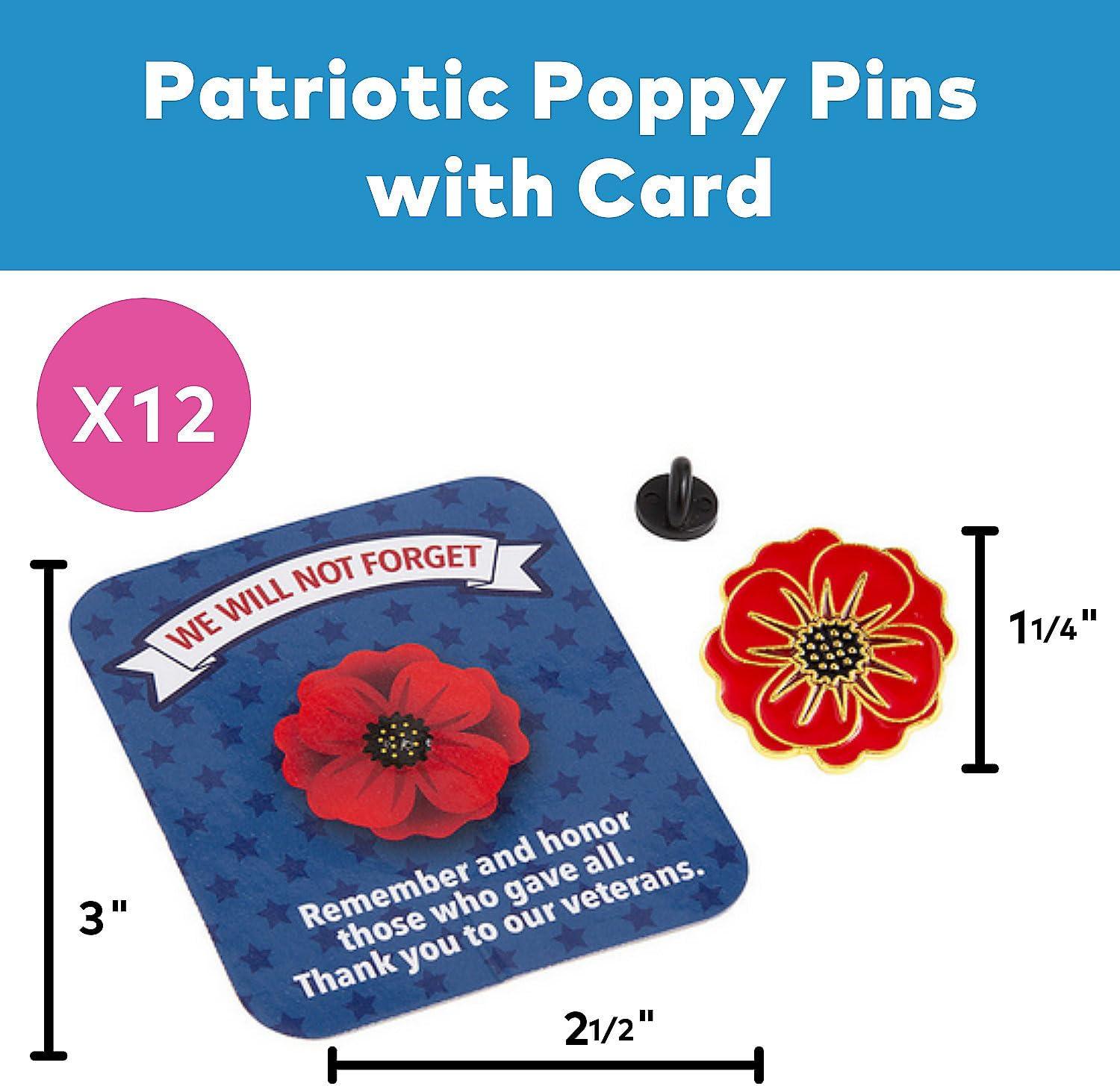 Patriotic Poppy Pins with Card – 12 Pieces
