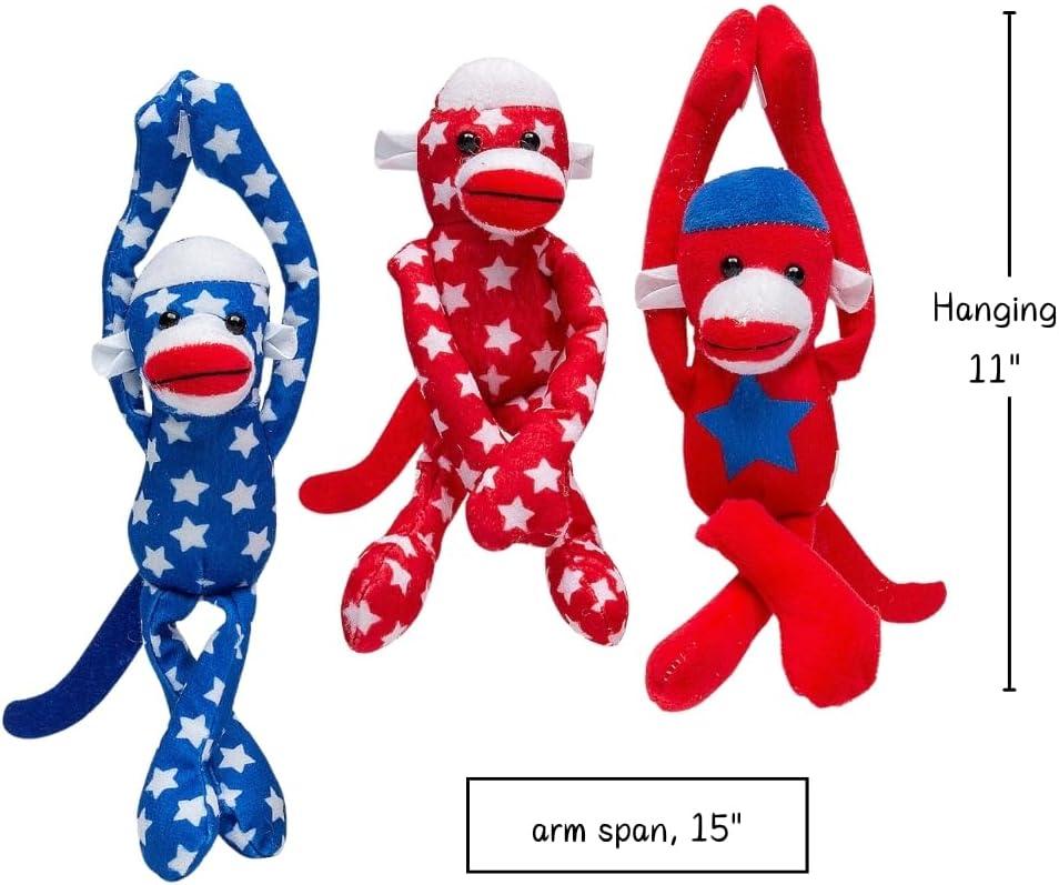 Fun Express – Long Arm Patriotic Sock Monkeys for Fourth of July – Toys – Plush – Long Arm Plush – Fourth of July – 12 Pieces