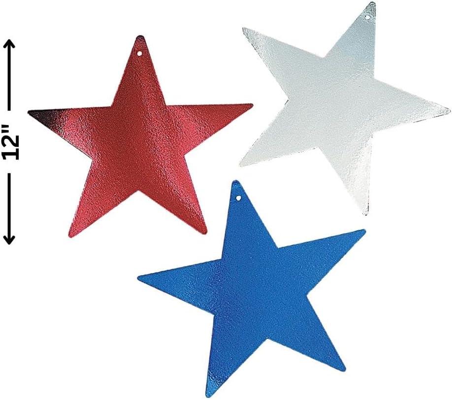 • Fun Express Metallic Patriotic Star Cardboard Cutouts (12 Pieces – 12 Inch) Fourth of July Cut Outs