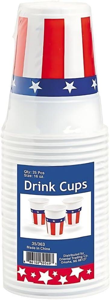 • Fun Express Patriotic Design Disposable Cups, Bulk 50 Pack – USA Fourth of July Party Supplies