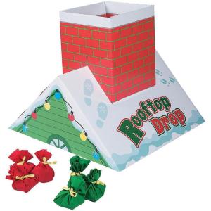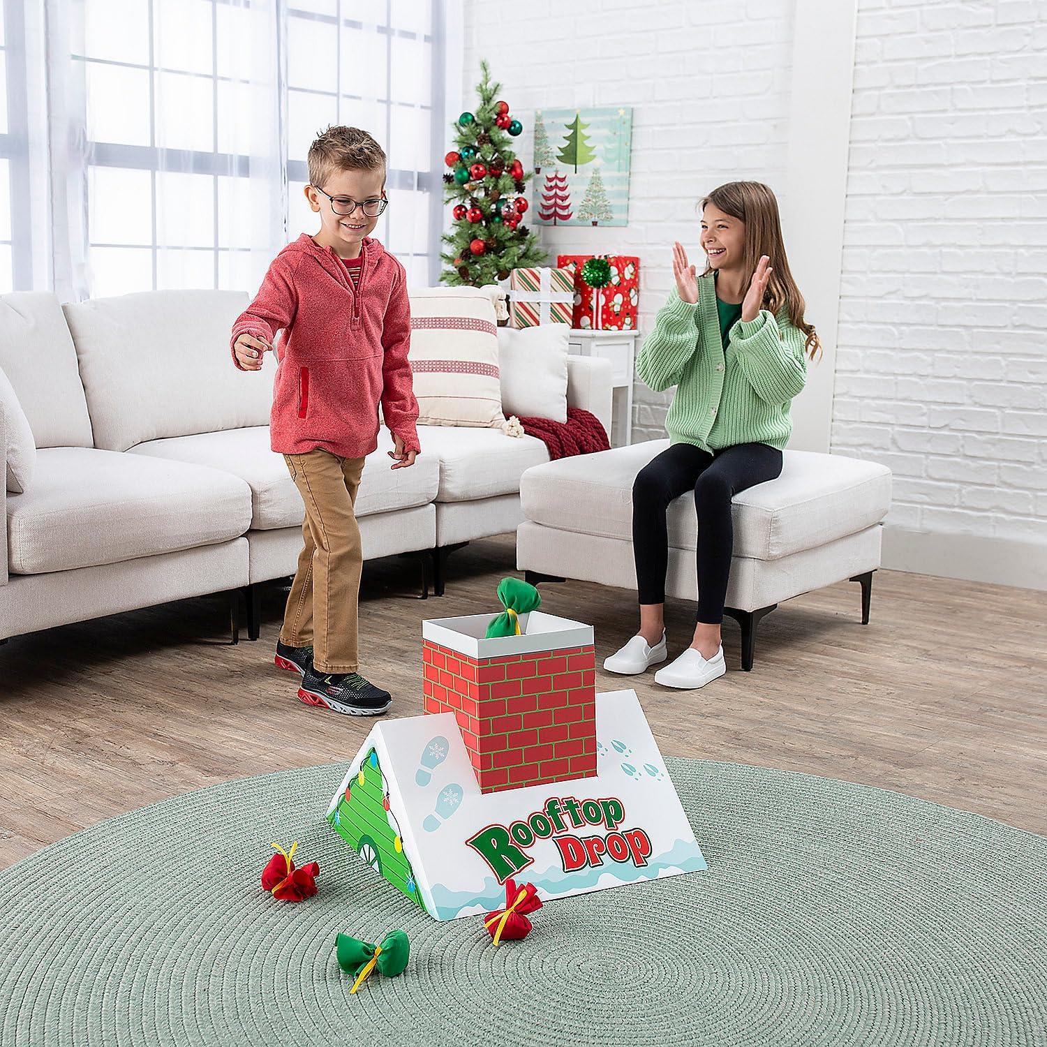 Fun Express Christmas Bean Bag Toss Game for Kids – Holiday Rooftop Chimney Drop Party Game Set with 6 Present Bags | Fun Activities for Family Games, Parties & Winter Entertainment