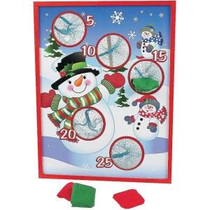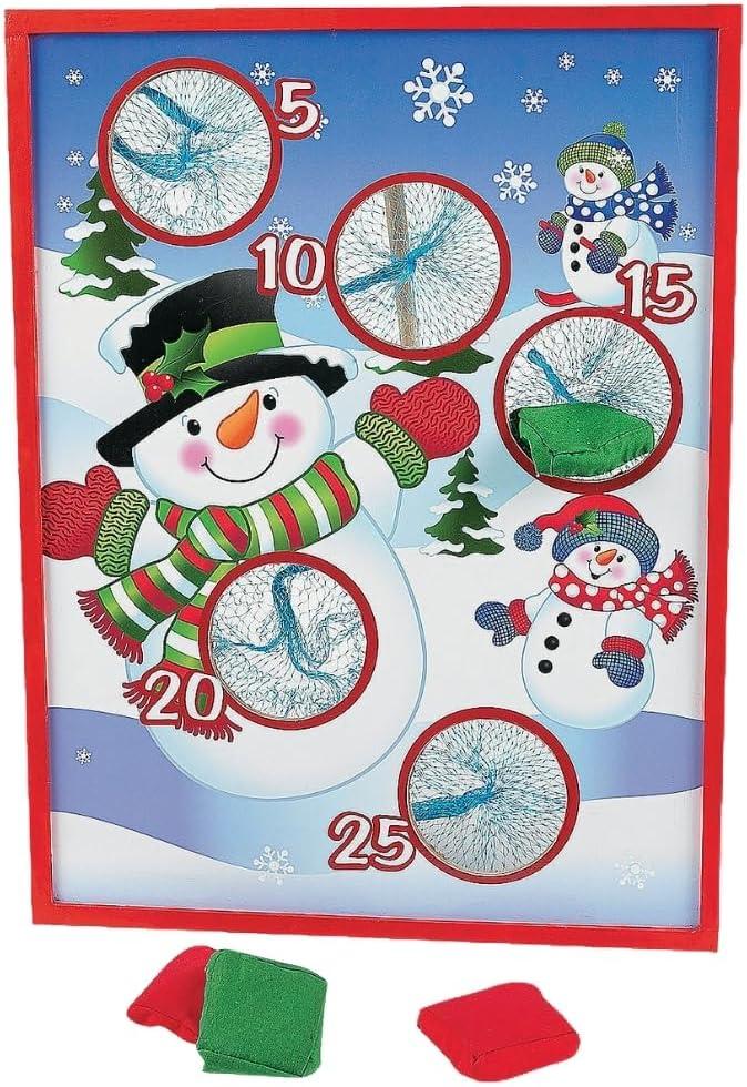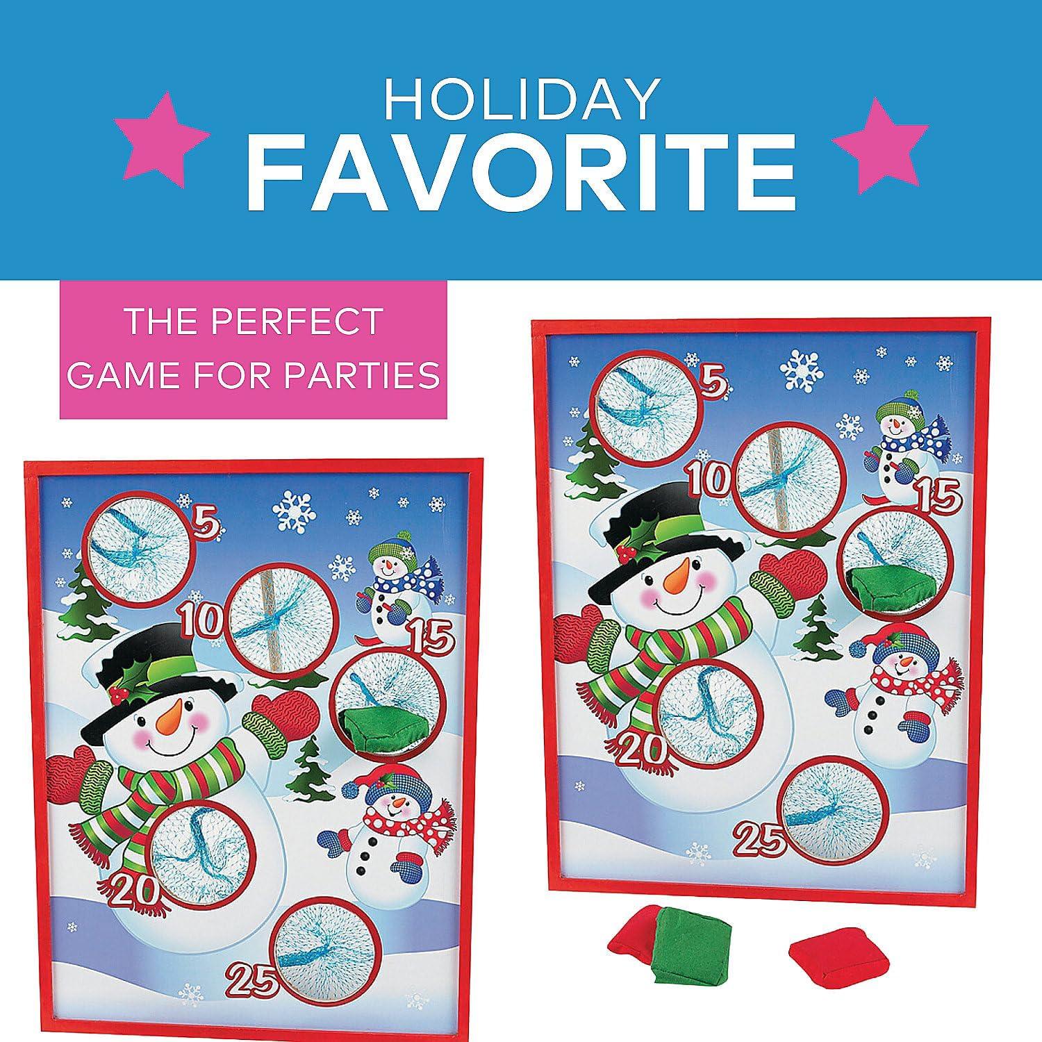 Fun Express Christmas Bean Bag Toss Game for Kids & Family Party – Wooden Snowman Board with 5 Bean Bags | Indoor Winter Holiday Games for Toddlers, Children & Adults | 16×20 Board with Stand