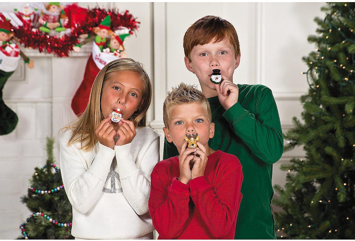 Fun Express Holiday Shaped Whistles (48 Pack) for Christmas Toys and Stocking Stuffers