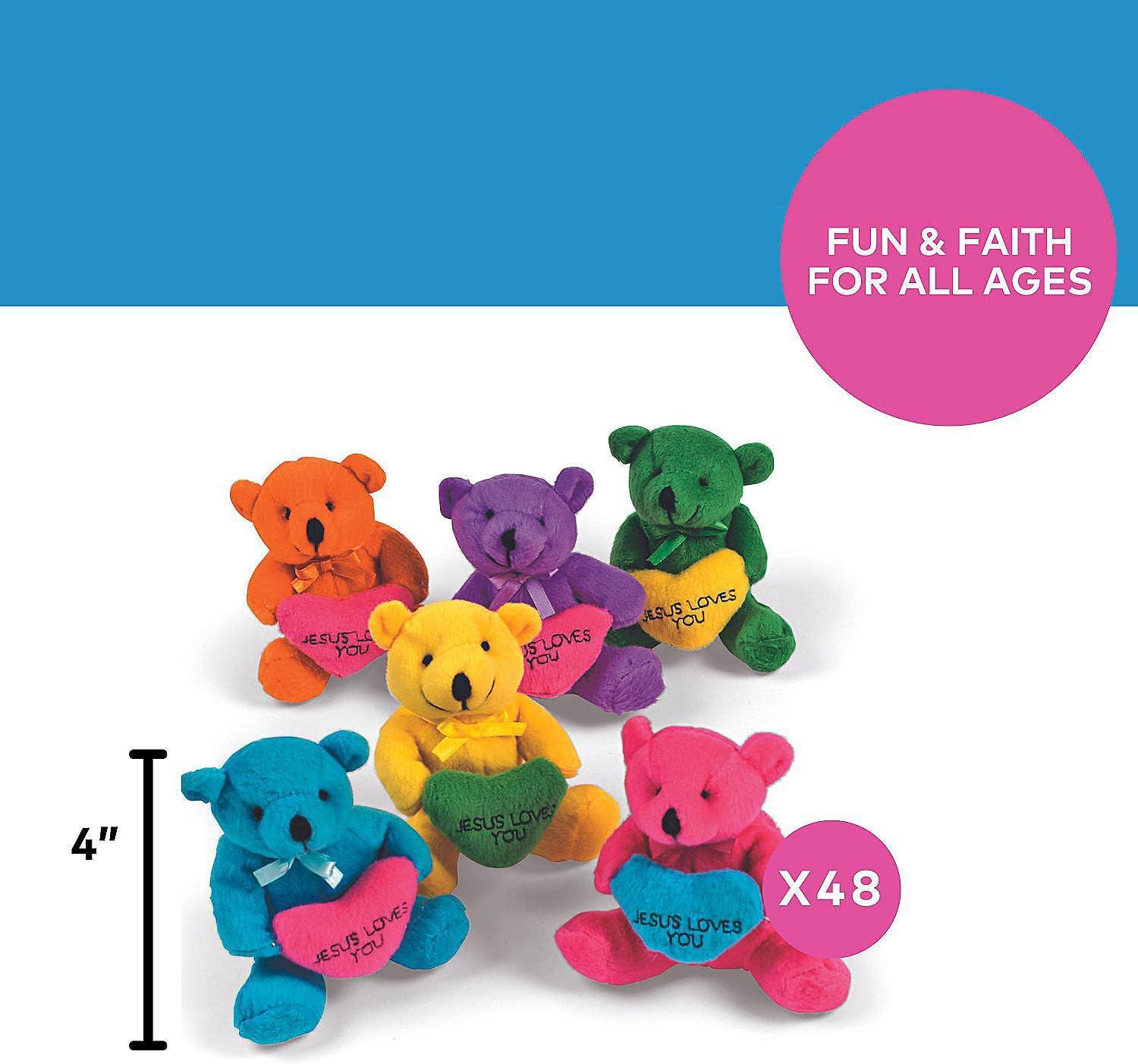 - Our holiday sale features the best deals on Fun Express Jesus Loves You Plush Religious Bears with Heart - 12 Pack Small Teddy Bears for Christian Party Favors, Baptism Gifts & Sunday School Prizes | 4.25" Mini Stuffed Animals Bulk Set and accessories. Shop now and save!