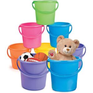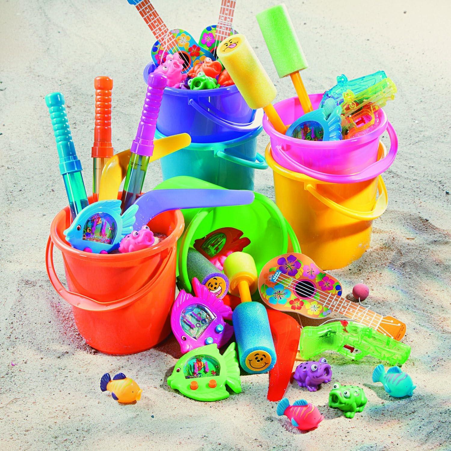 Fun Express Sand Buckets for Kids 12 Pack – Premium 7 Inch Beach Buckets with Easy-Grip Handles | Durable Plastic Sand Toys for Ages 3+ | Perfect for Beach, Sandbox & Pool Play