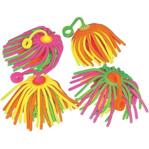 Fun Express Neon Large Stretchy Noodle Ball Yo Yos Party Favor Toys – Multicolor (Set of 12)