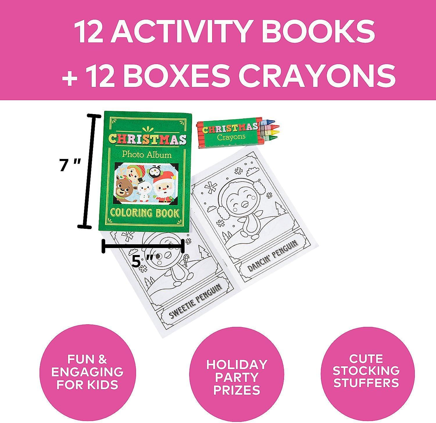 • Fun Express Christmas Coloring Books with Box of Crayons (12 Books and 12 Boxes of Crayons) Stocking Stuffers and Christmas Party Favors