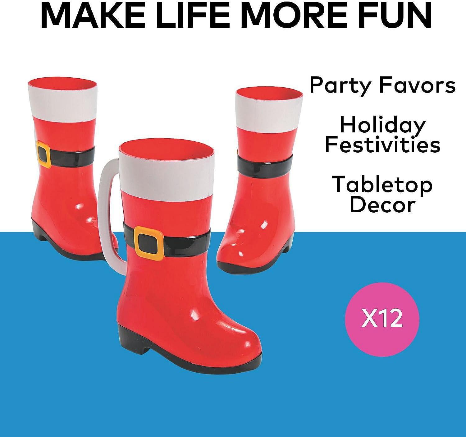 • Fun Express Christmas Mugs Set of 12 – Santa Boot Plastic Coffee Mugs with Handles | 10 oz Holiday Party Cups for Kids & Adults | Reusable Christmas Party Supplies & Favors for Hot Chocolate Bar