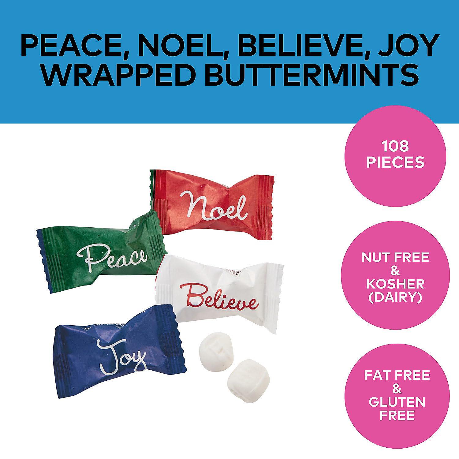 • Fun Express Faith Buttermints Individually Wrapped Christmas Candy Bulk – 108 Pieces Holiday Mints with Scripture Messages | Gluten-Free Soft Dinner Mints for Office, Classroom & Wedding Celebrations