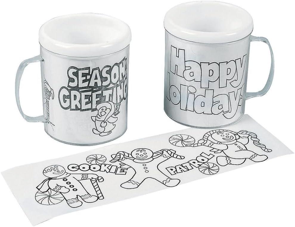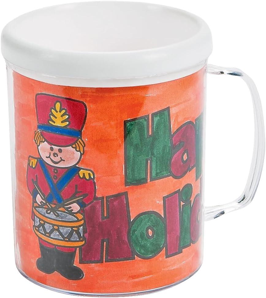 • Fun Express Christmas Mugs Set of 4 Kids – 12 Pack Color Your Own Holiday Artist Plastic Mugs with Handles | Craft Kits for Christmas Party Activities & DIY Mug Painting Projects
