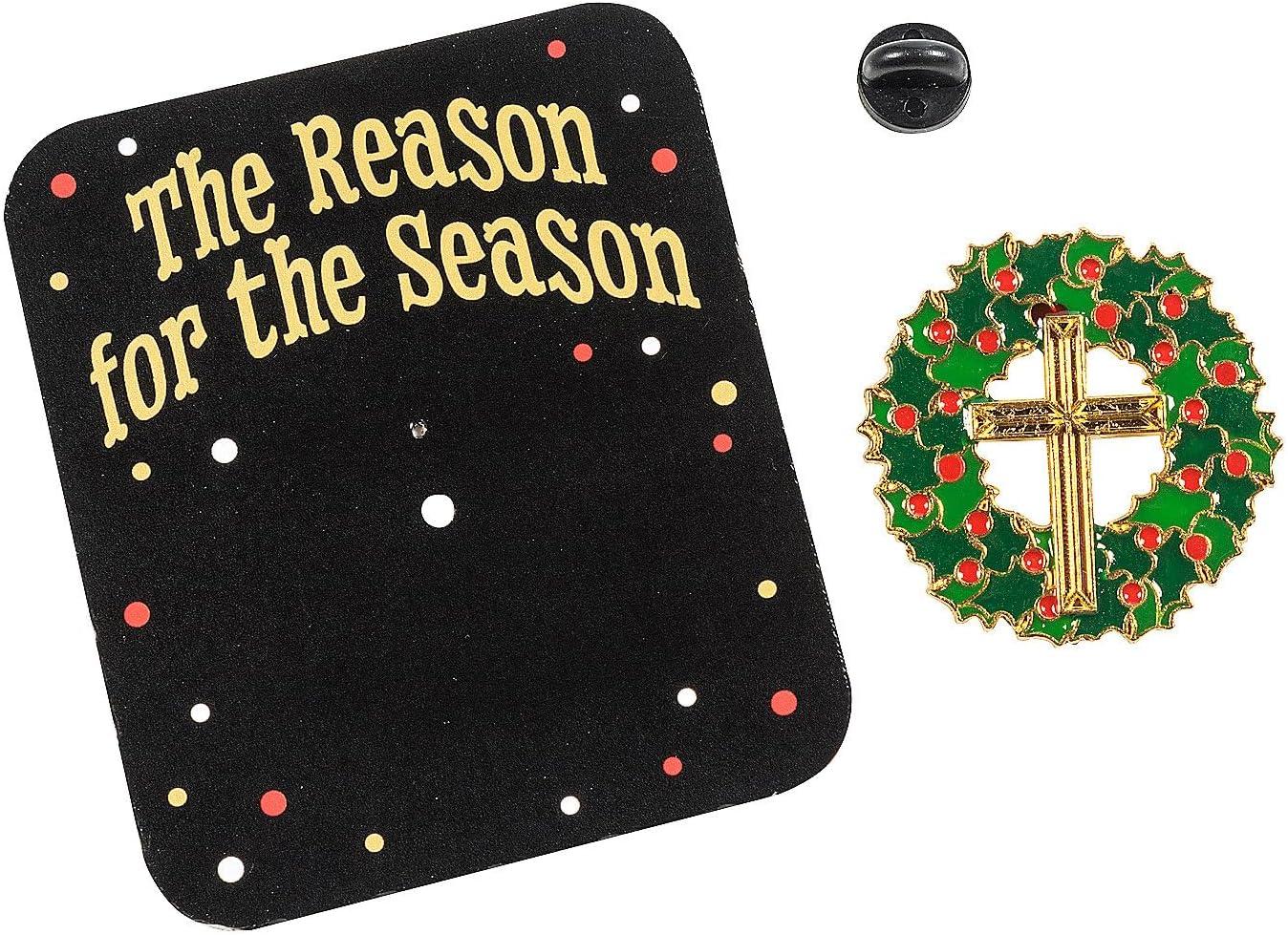 • Fun Express Elegant Green Wreath Cross Metal Pins – 1.5″ (Pack of 12) – Symbolic Christmas Design on Cards, Perfect for Church Events, Bible Study Groups, and Christmas Gifts.