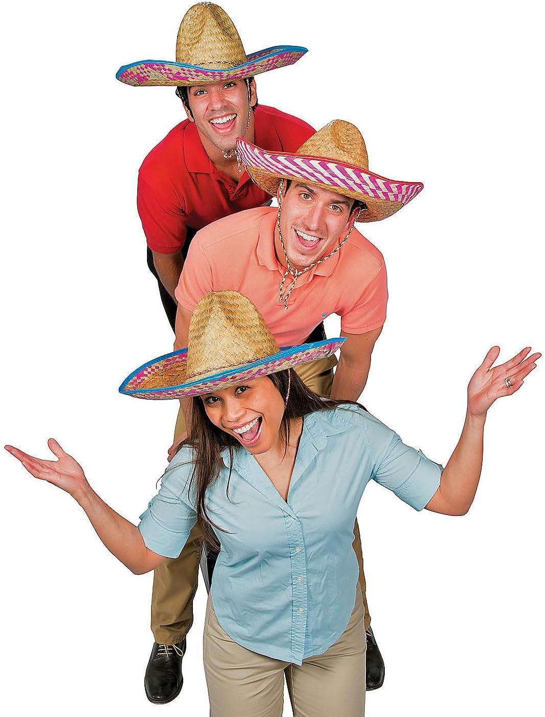 Fun Express Colored Sombrero Hats – Long-Lasting Set of 12 Versatile Hats for Celebrations and Events – Soft, Safe Materials for Perfect Fit for Everyone