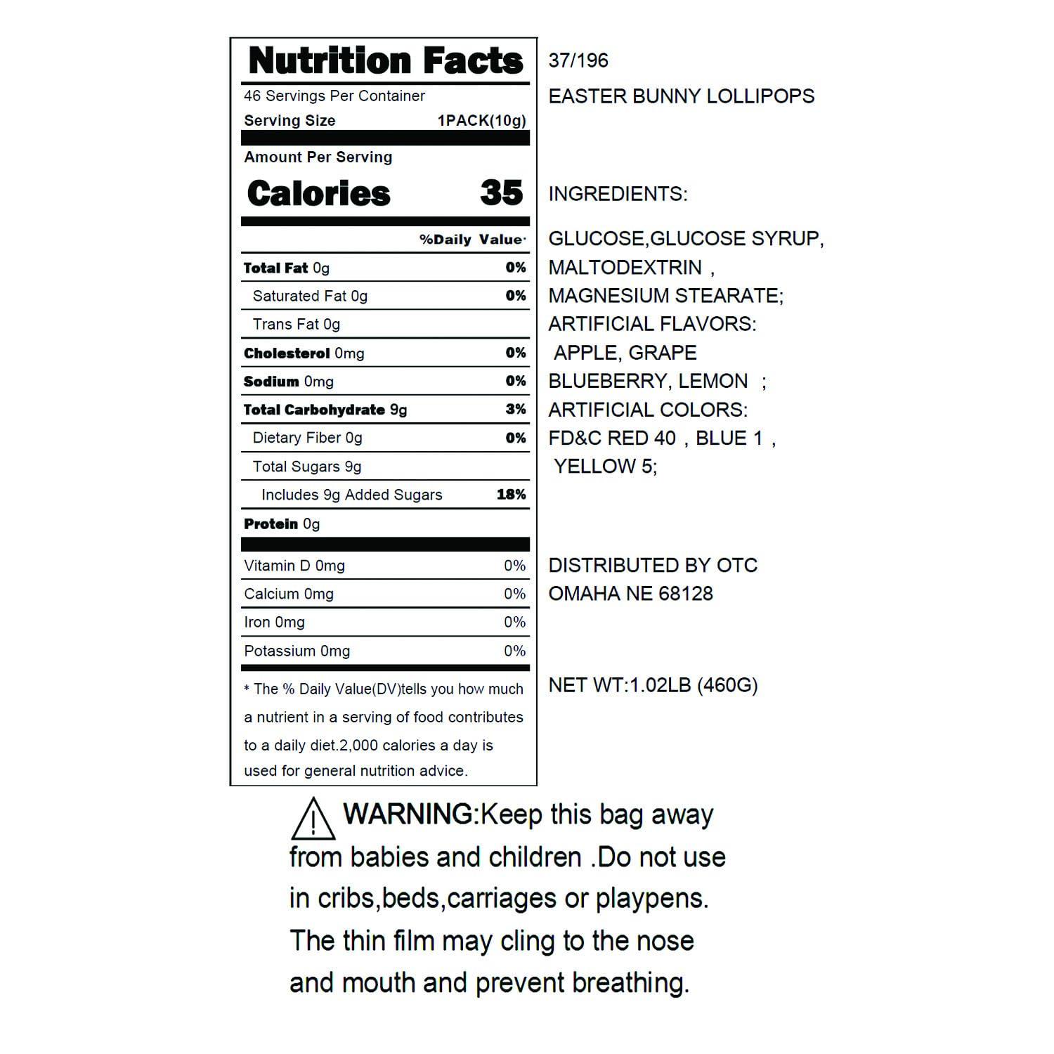 46 Pieces Easter Bunny Lollipops – 1 lb – (individually wrapped suckers) Easter Basket and Party Candy