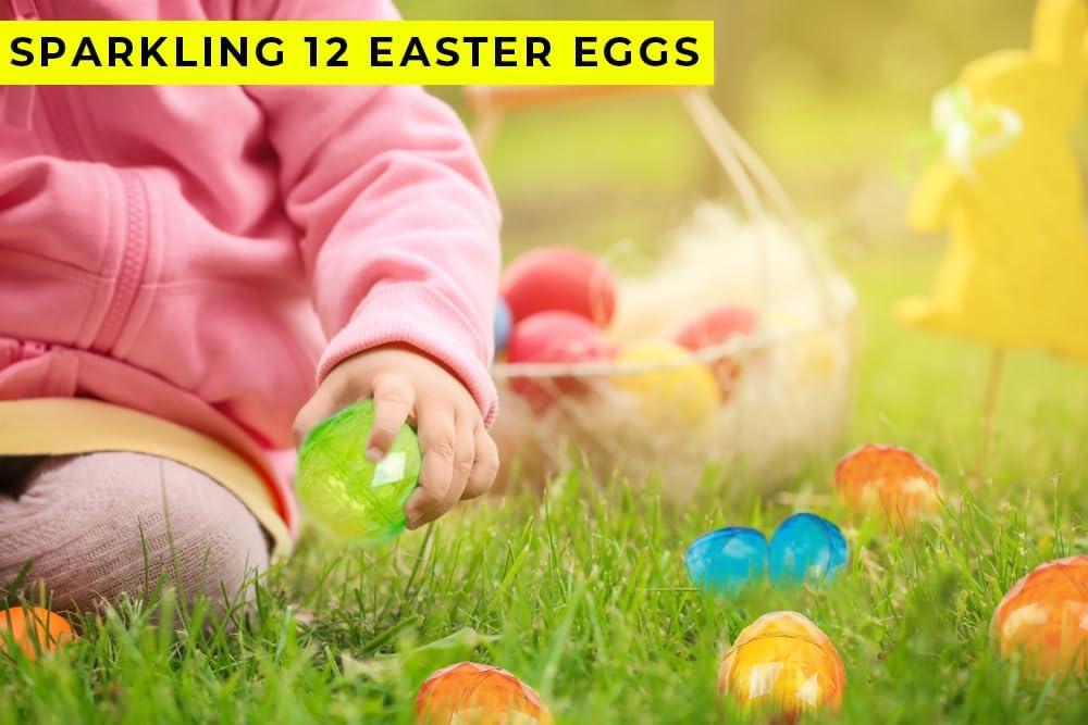 Fun Express Diamond Plastic Easter Eggs – Sparkling 12 Easter Eggs, Elevate your Easter Egg Hunt Experience with Plastic Diamond Egg – Roomy Delights, Big Surprises Await & Stress-Free Easter Fun