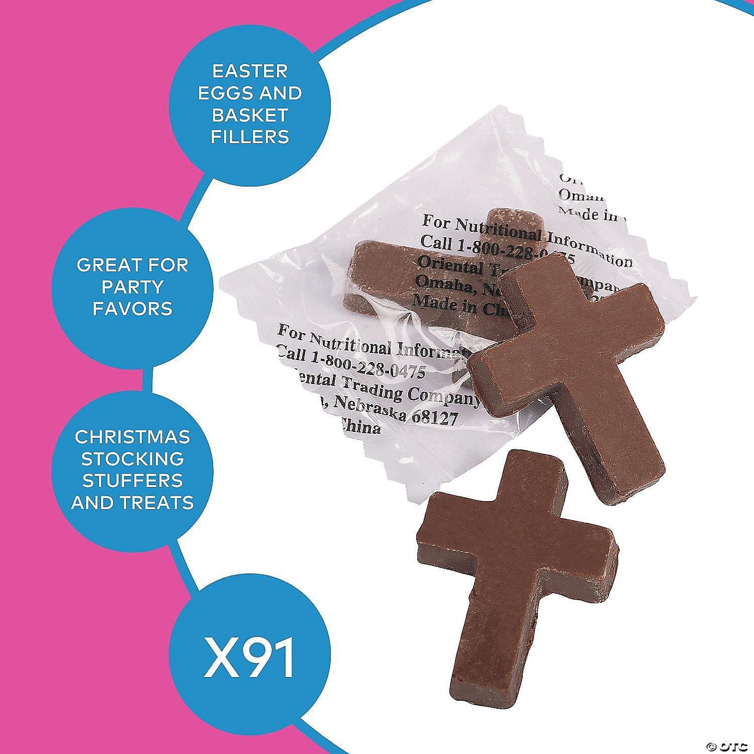 Fun Express Chocolate Cross Candy for Easter Bulk 91 Pack – Religious Christian Easter Basket Stuffers & Egg Fillers | Individually Wrapped Scripture Candy for Sunday School, Church Events & Holiday Celebrations