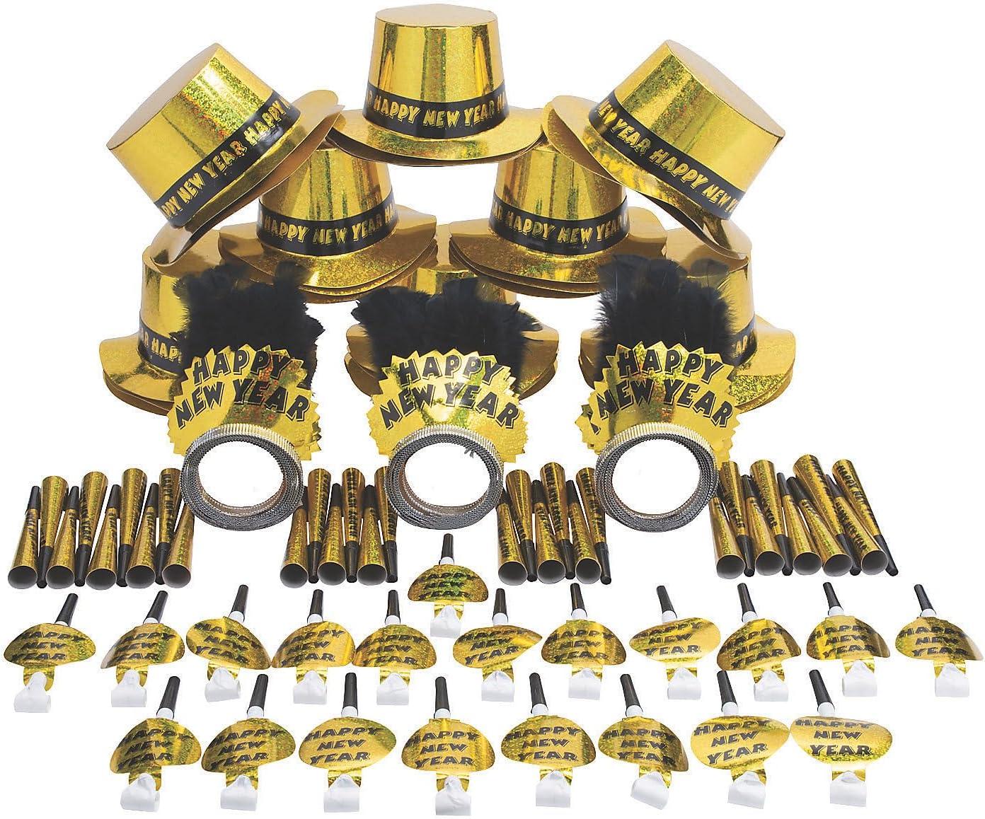 Fun Express Gold New Year’s Eve Party Kit for 50-105 Pieces – Party Supplies, Decorations, for a Glitzy Celebration – Complete Kit