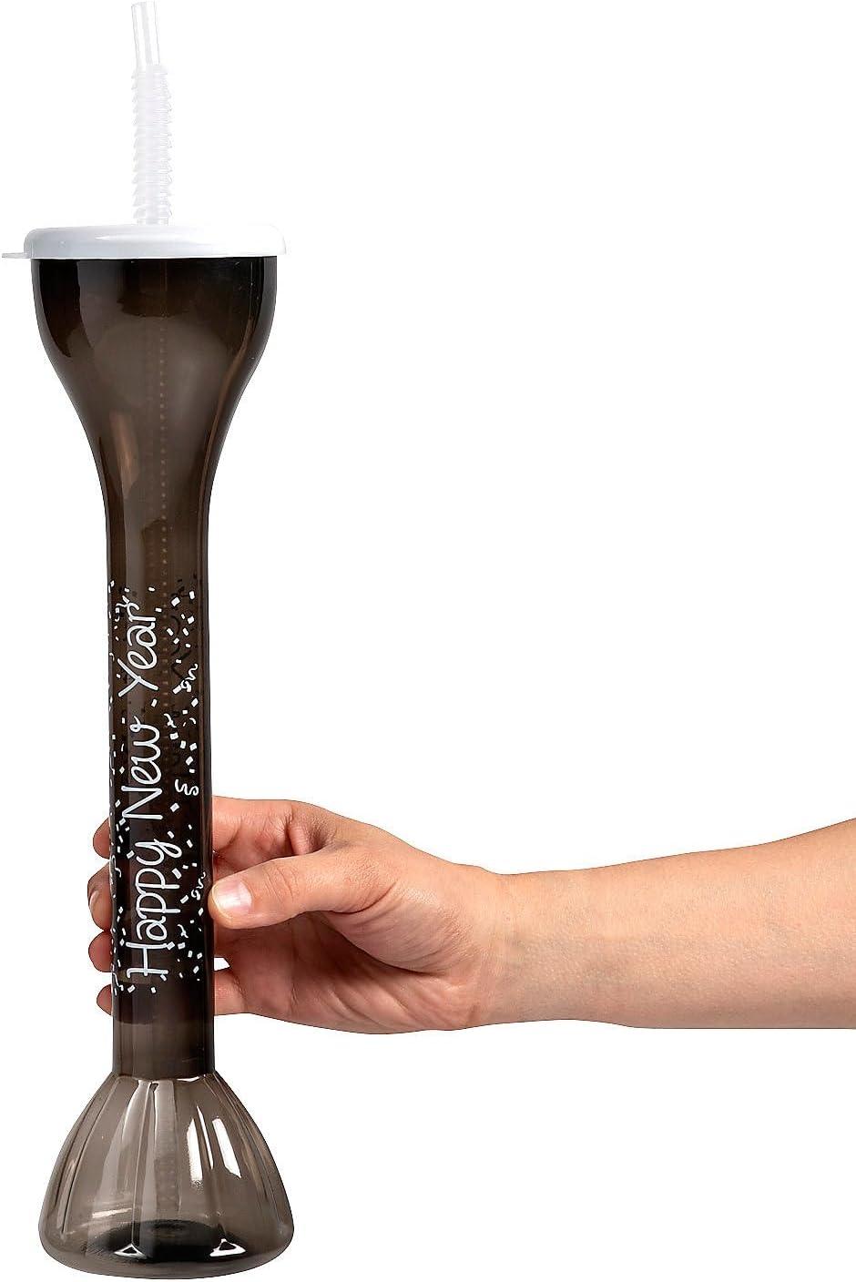 Fun Express New Year’s Eve BPA-Free Plastic Yard Glasses with Lids & Straws – 6 Ct