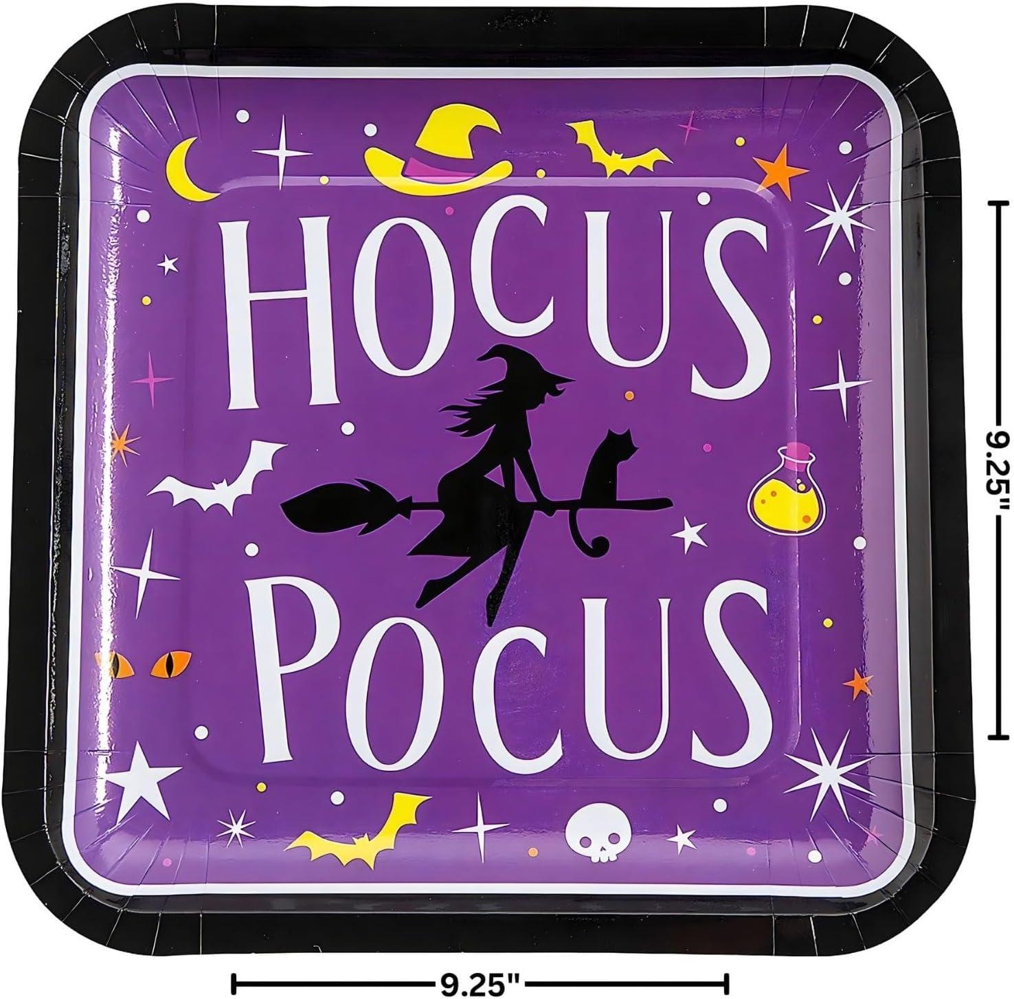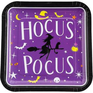 Fun Express Witch Party Square Paper Dinner Plates – Hocus Pocus Witch Themed Tableware Decorations for Halloween Party Supplies – 8 Pieces
