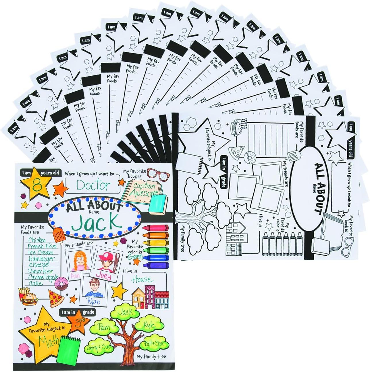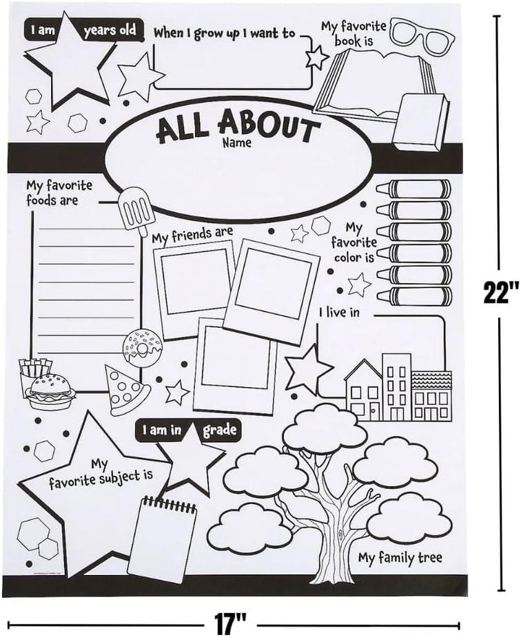 Fun Express All About Me Posters for Kids – 30 Color Your Own Star Posters – DIY School Classroom, Daycare, Preschool, Kindergarten Activities