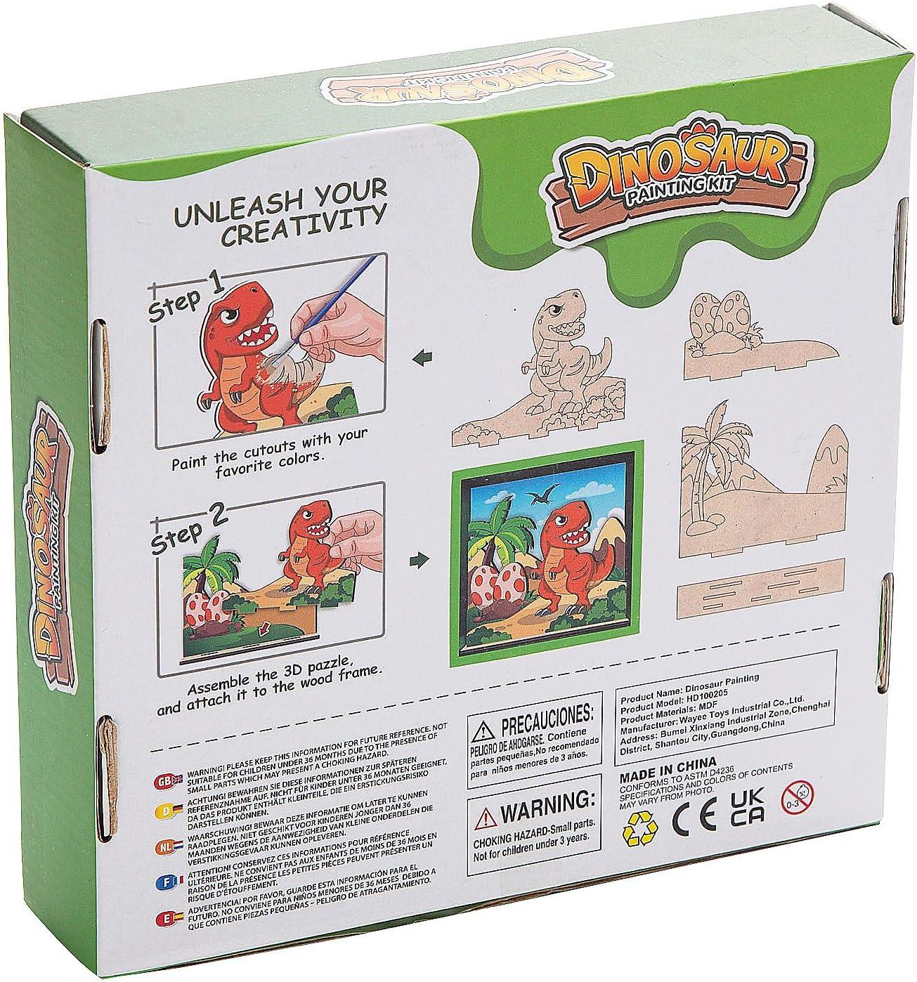 Fun Express 3D DIY Dinosaur Wood Puzzle Painting Kit, All in One Kids Craft Kit, Birthday and Everday Gifts, Great Creative Activity for Home and School(Retro)