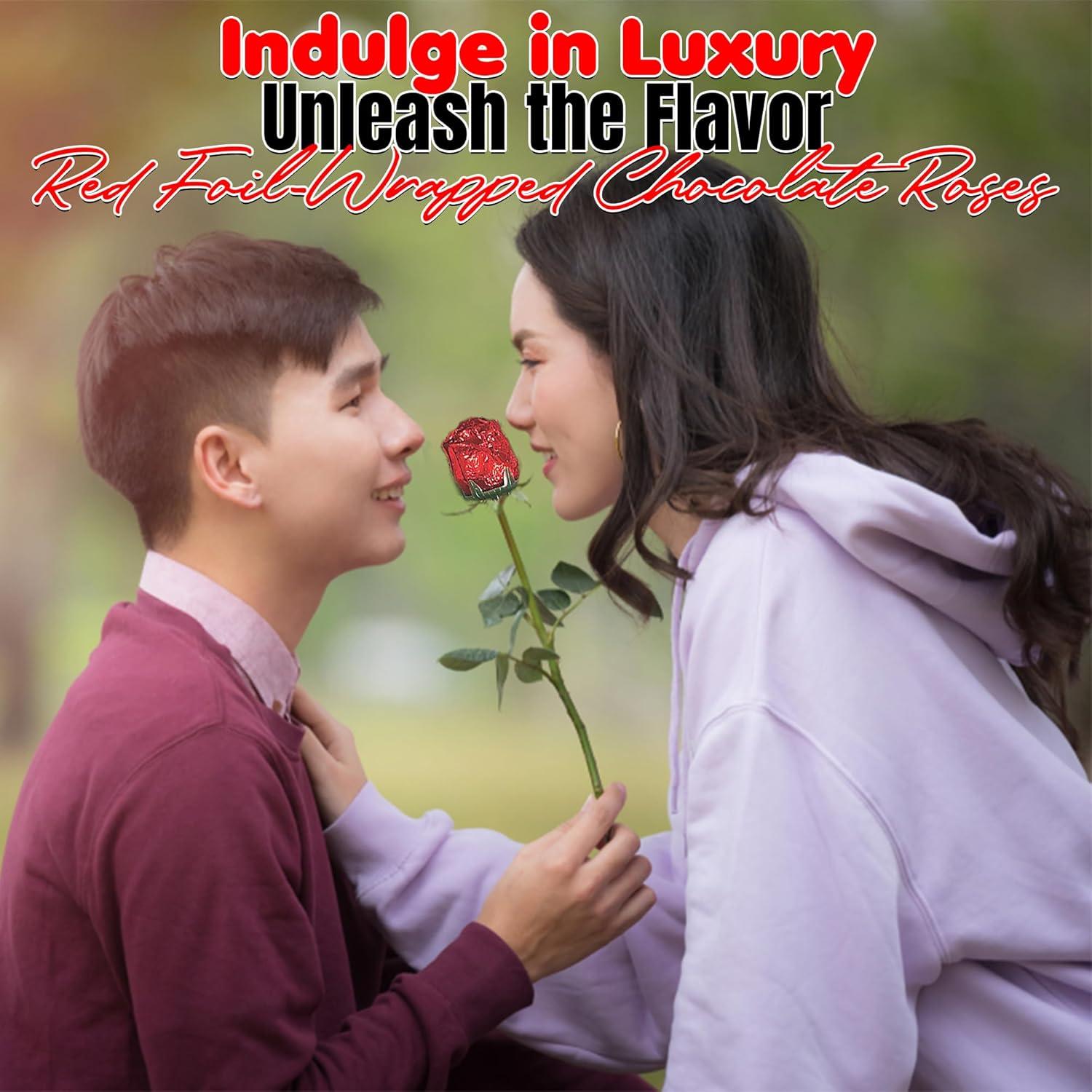 SWEET AFFECTION: Share love with our bulk red foil-wrapped chocolate roses. Ideal for Mother's Day, Valentine's, Graduation, and Prom. Express sentiments sweetly
