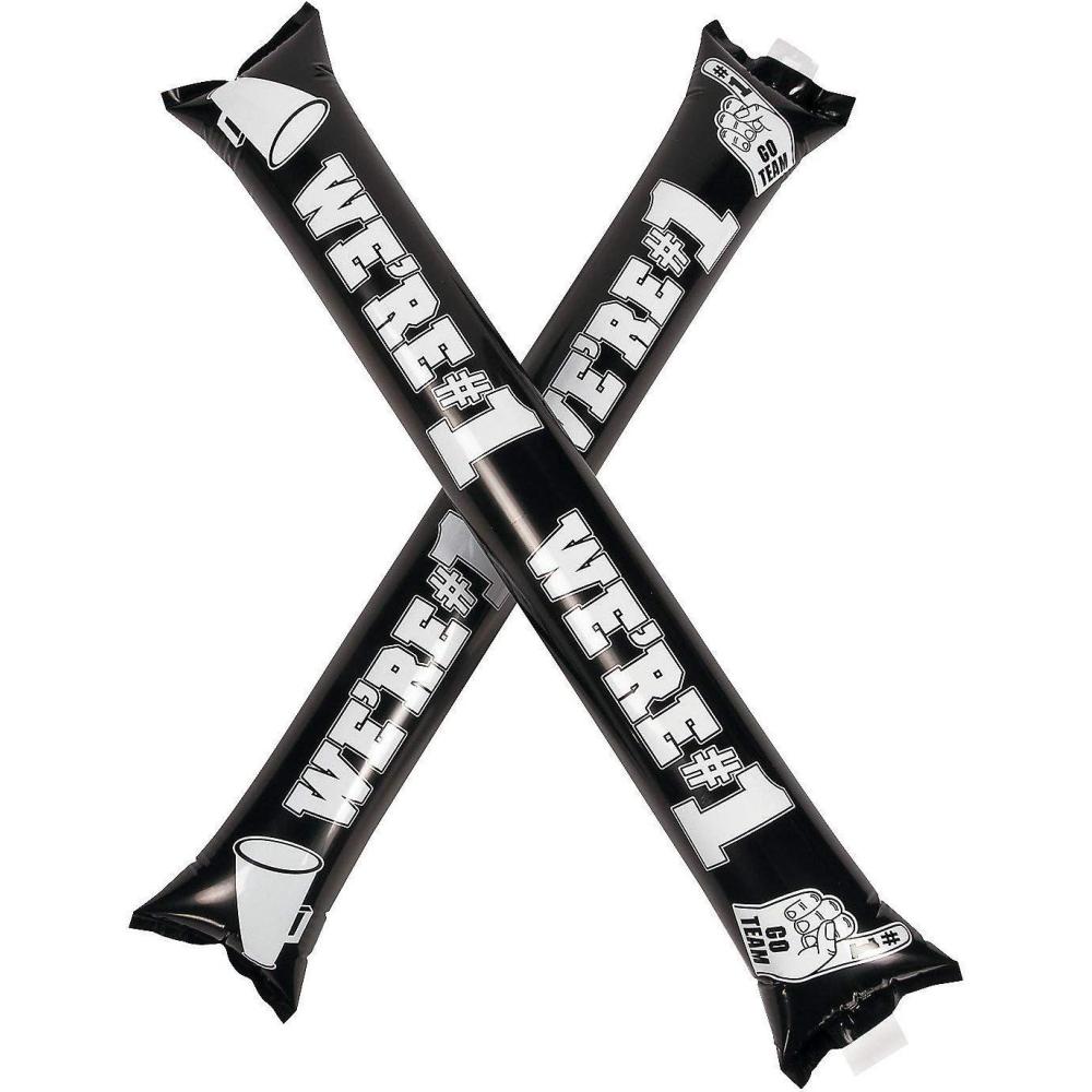 Oriental Trading Black Inflatable Team Spirit Boom Sticks make a fun addition to your school spirit store. Use these boomsticks to help cheer on the team! Hand these noisemakers out before the big game or pep rally begins. Imprinted with 'We're #1'. Made of mylar. Comes in a pack of 24. Measures 4-inch width by 23-inch height inflated, includes 4-inch blow stick.