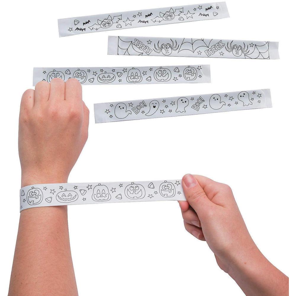 SPOOKTACULAR DIY FUN: Unleash your inner artist and create a unique Halloween accessory with our Color-Your-Own Slap Bracelets! Perfect for kids and adults alike, giving you a fun and personalized way to celebrate the spooky season.