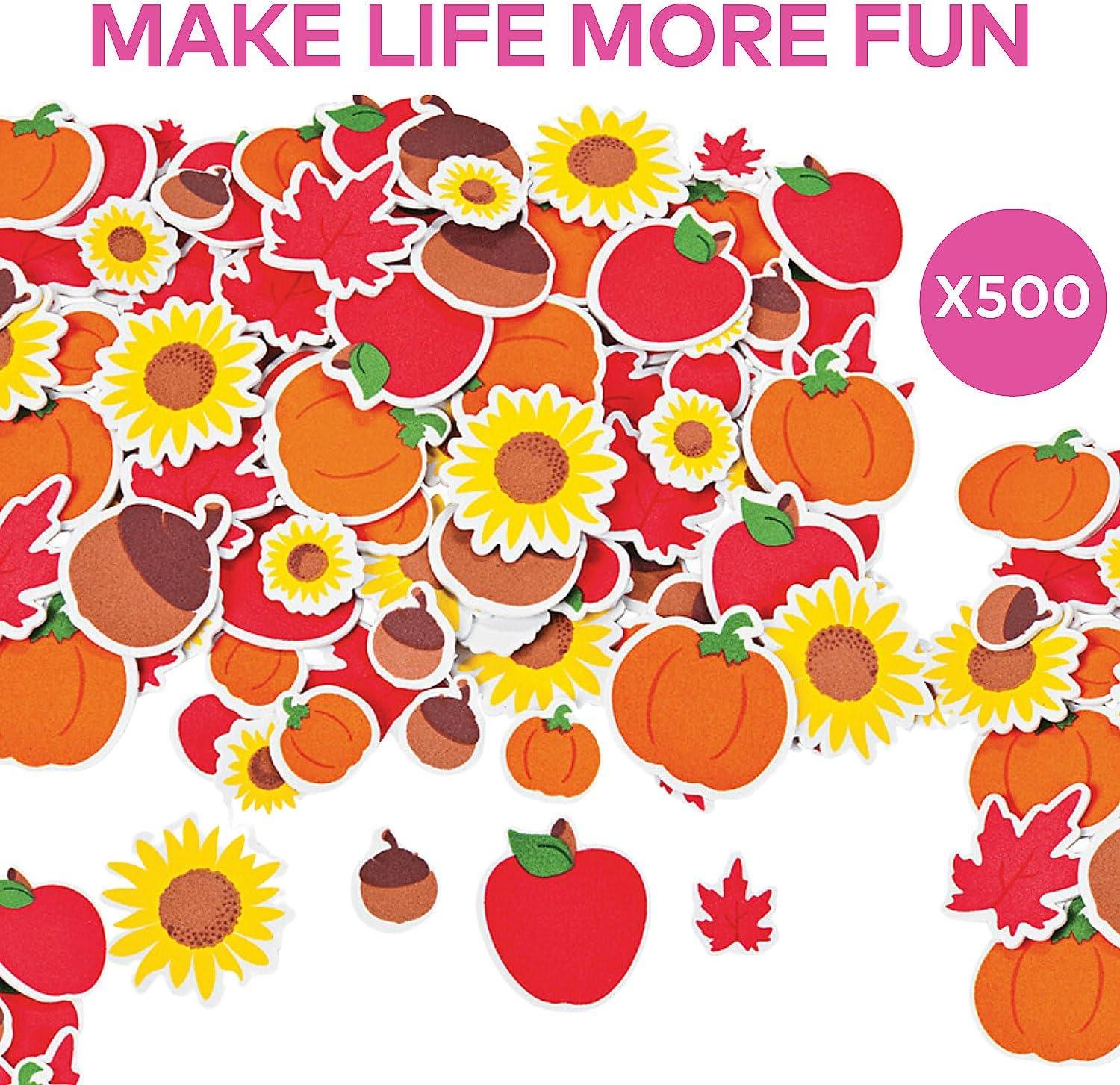 Fall Themed Adhesive Foam Shapes – Bulk 500 Fun Autumn Shapes Like Pumpkins and Apples – Craft Supplies for Kids