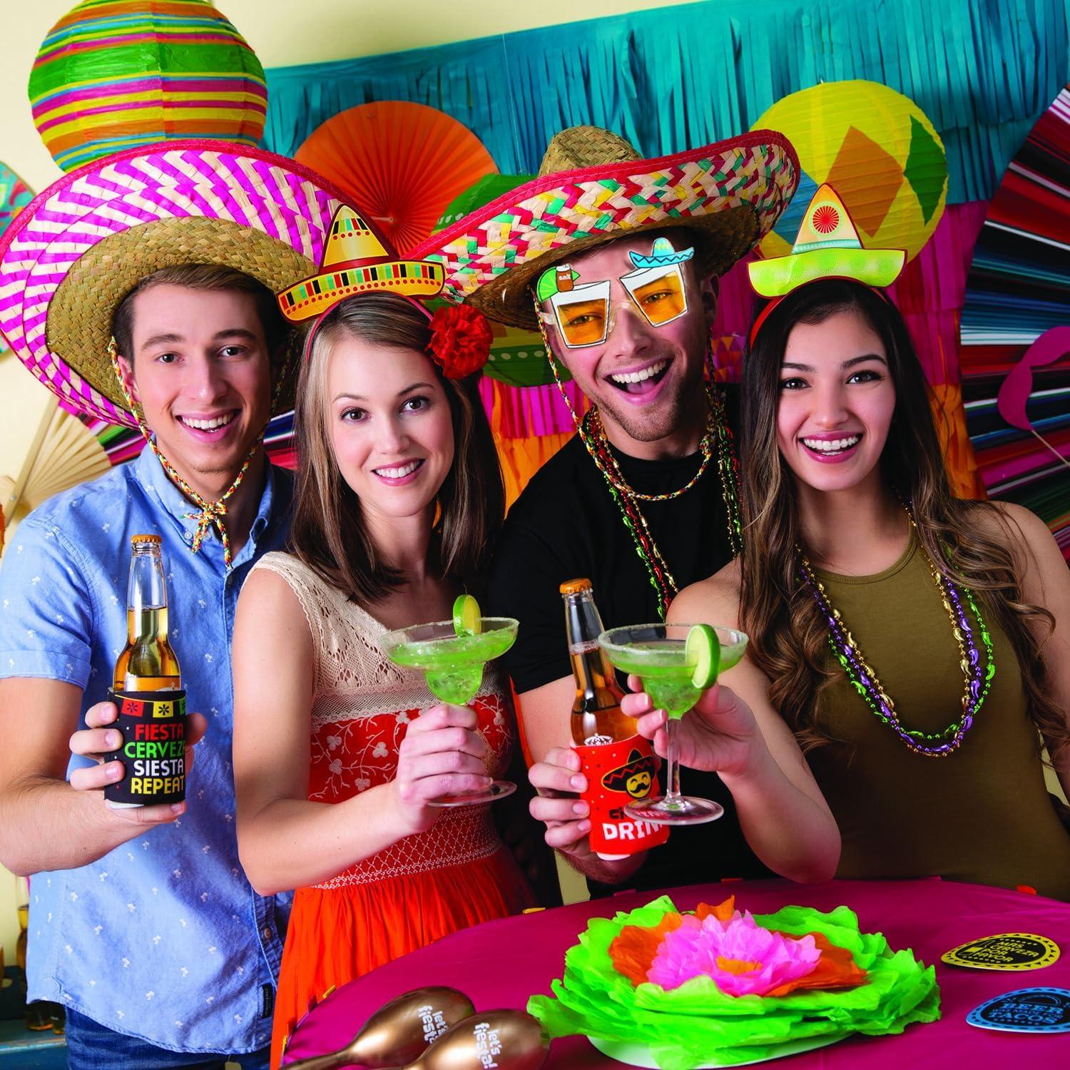 Fun Express 12 Straw Sombrero Hats with Drawstring for Adults – Adjustable Sombrero Hats Brown