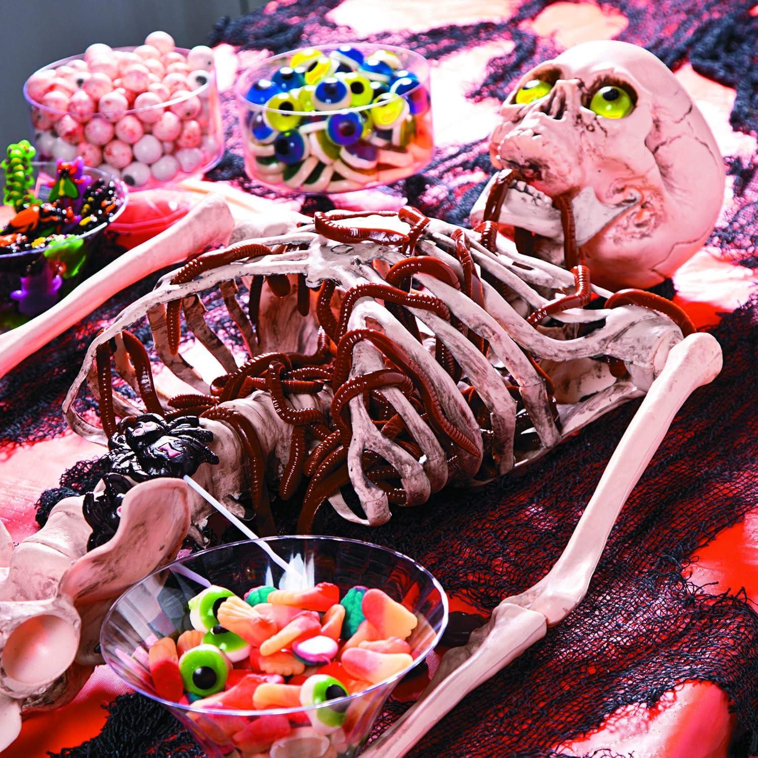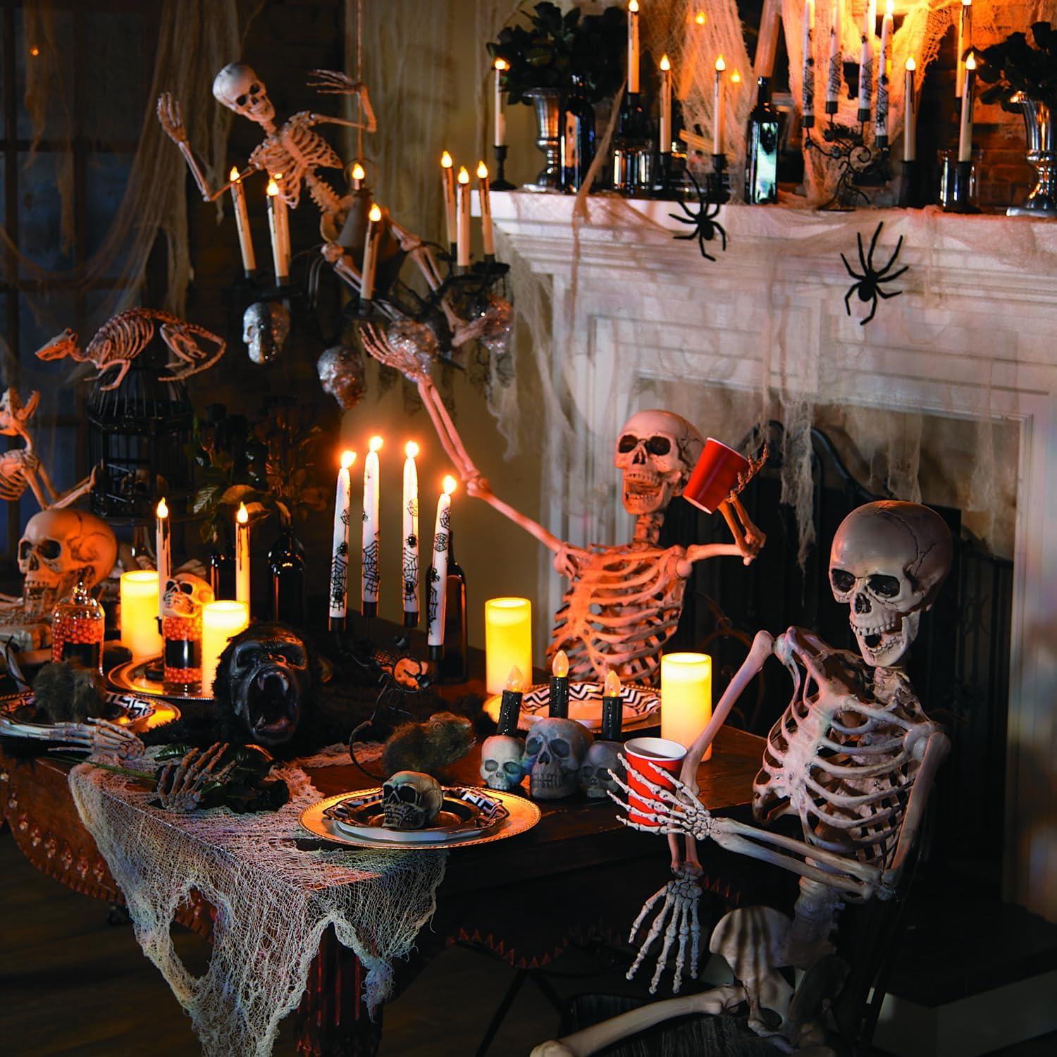Fun Express 5 Foot Life Size Skeleton Halloween Decorations Outdoor – Posable Full Body with Movable Joints for Yard, Haunted House Props & Indoor Scary Decor | Premium Plastic Construction