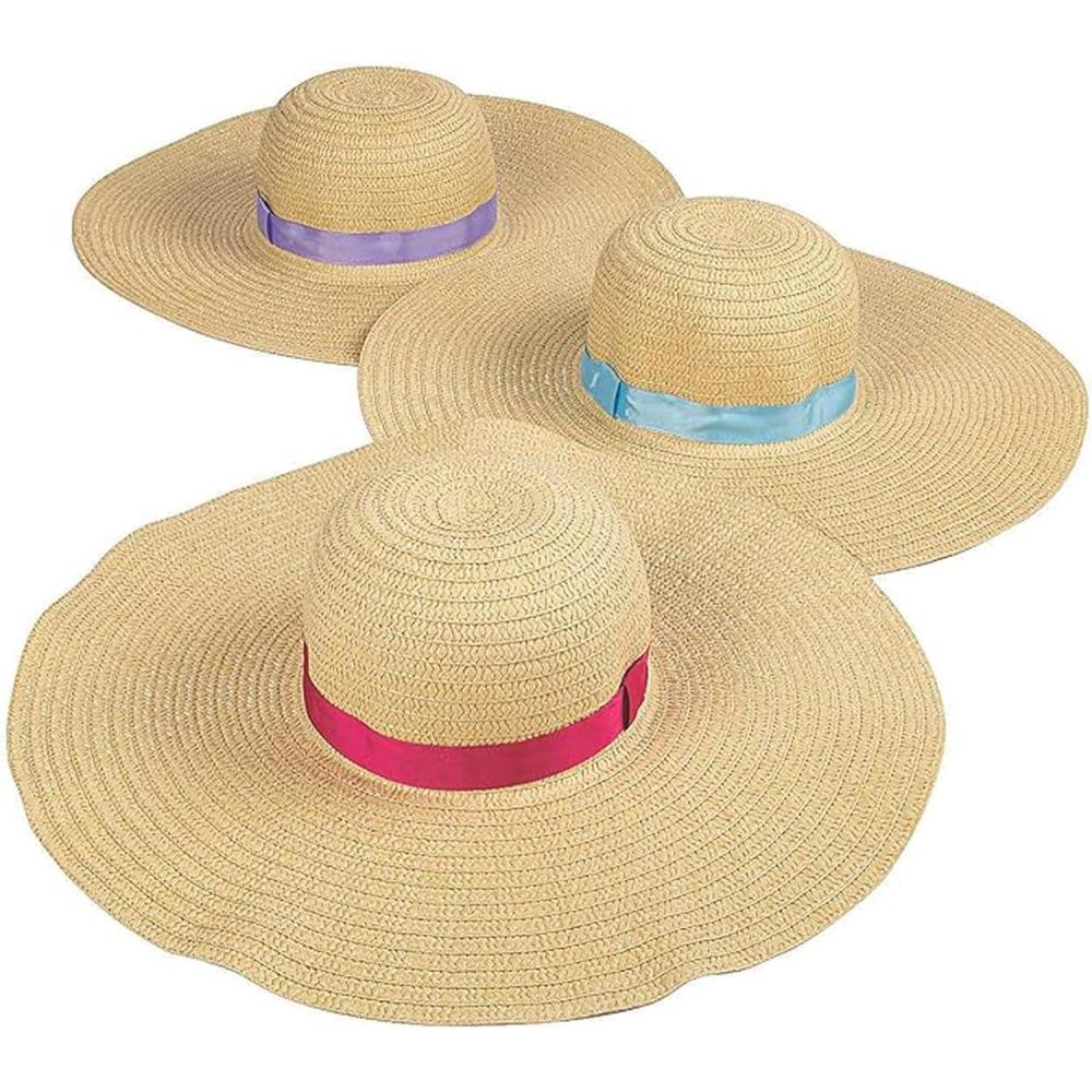 With oversized brims and colorful bands, these straw sun hats can be used as costume accessories, party favors or every day headwear