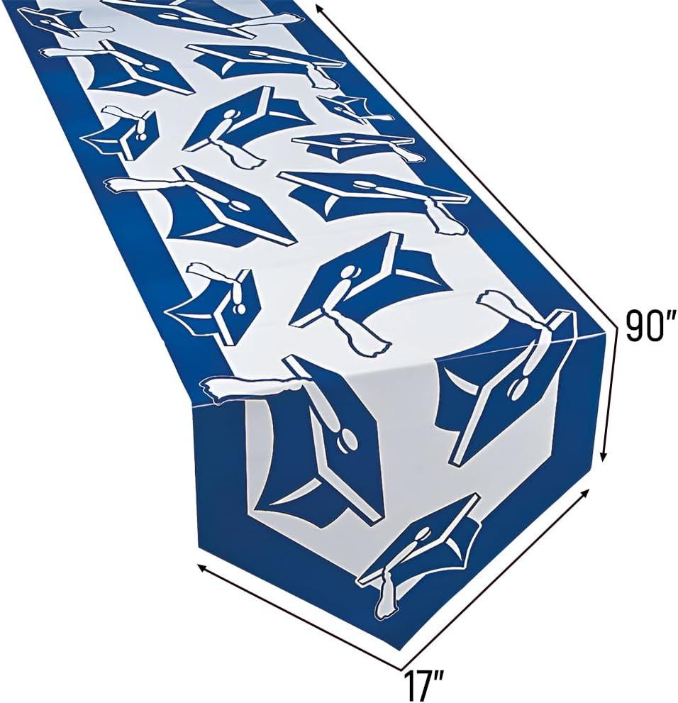 Fun Express Blue and White Congrats Grad Table Runner – 17 inch x 90 inch – Party Kitchen Dining Home Decoration – Decoration for Home Party Decor – VBS Vacation Bible School Supplies/Décor