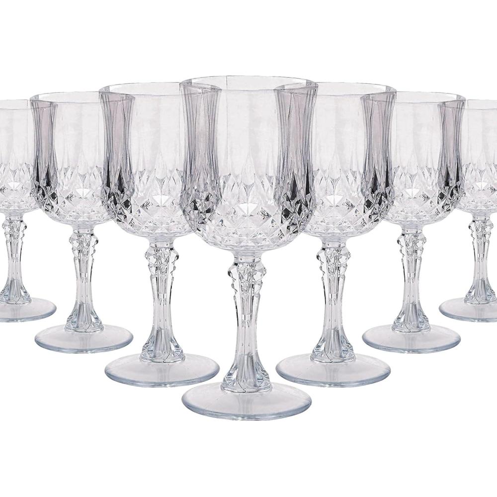 Fun Express Bulk Clear Plastic Patterned Wine Glasses, 48 Pieces, Wedding, Reception, Grand Event Party Supplies